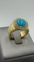 Colleen Lopez Turquoise Cabochon & White Topaz Halo Goldtone Ring, Size 8