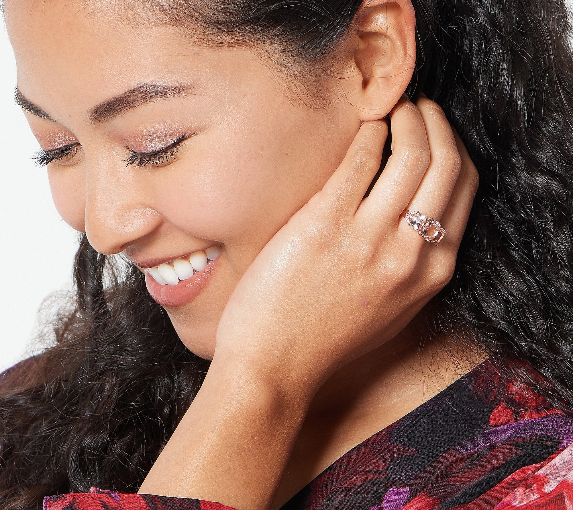 Three's the magic number on this mesmerizing morganite ring -- with the trio of enchanting gemstones elegantly accented with white zircon. From Affinity® Gems.