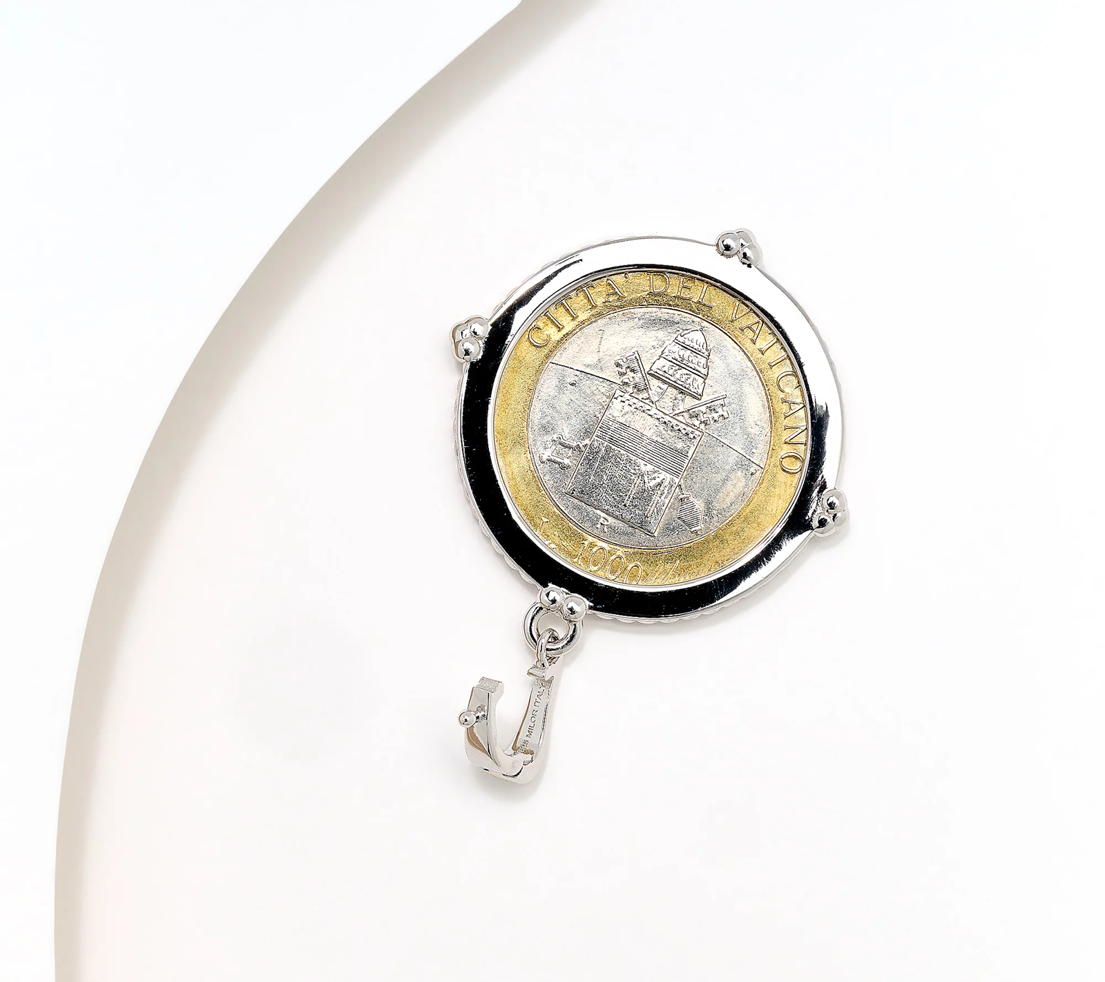 Wearing a symbol of history feels meaningful, whether styled with casual layers or an elegant blouse. A leather cord and sterling silver accents set the stage for this Vatican 1000 lira coin framed in a twisted design, letting you celebrate art and tradition with every outing. From David Markstein.