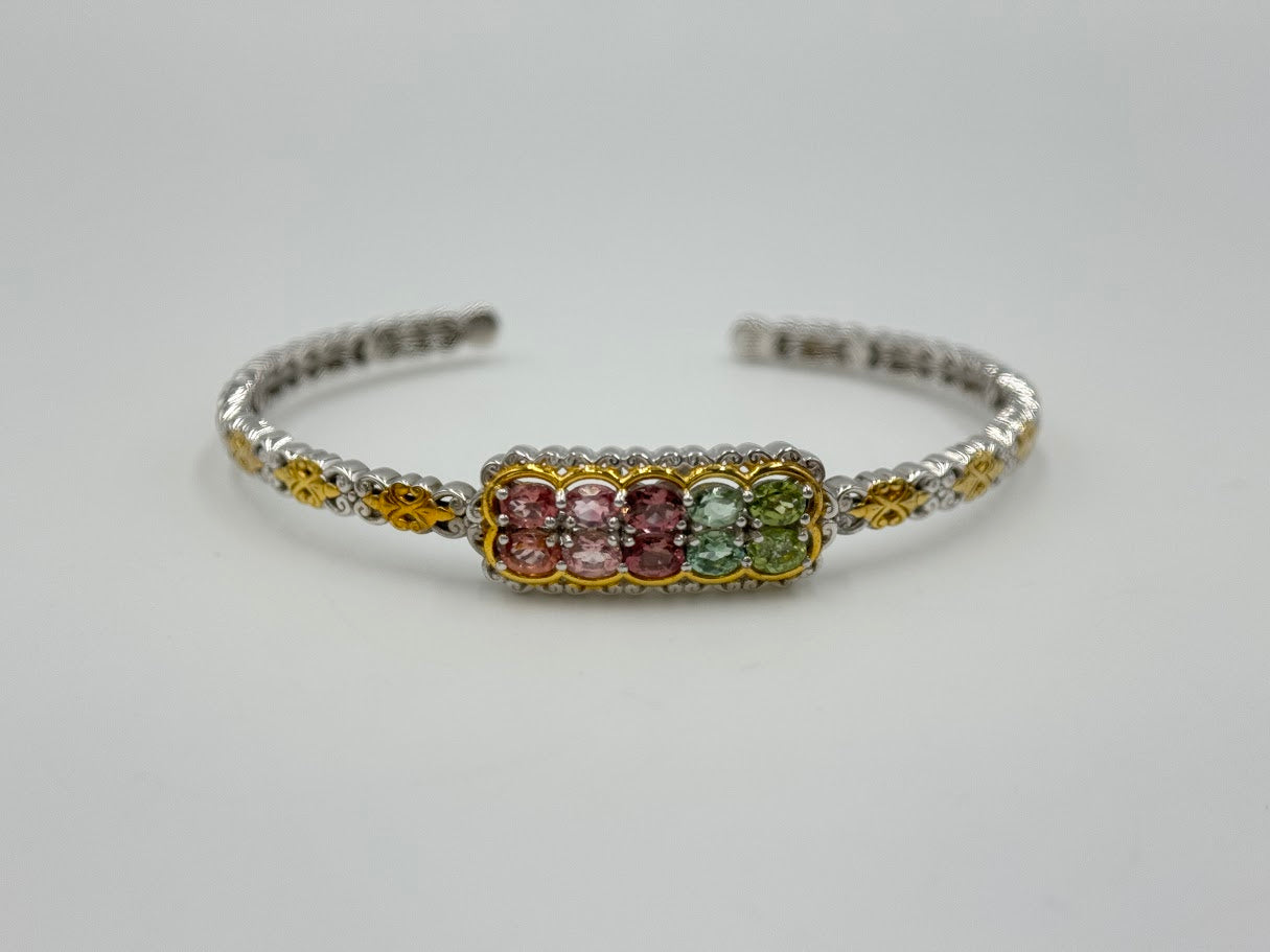 Make a sophisticated statement with this stunning Gems by Michael cuff bracelet, crafted in sterling silver with rich vermeil (gold overlay). Featuring vibrant multicolor tourmaline gemstones, this elegant cuff offers exceptional color, brilliance, and artisan craftsmanship.