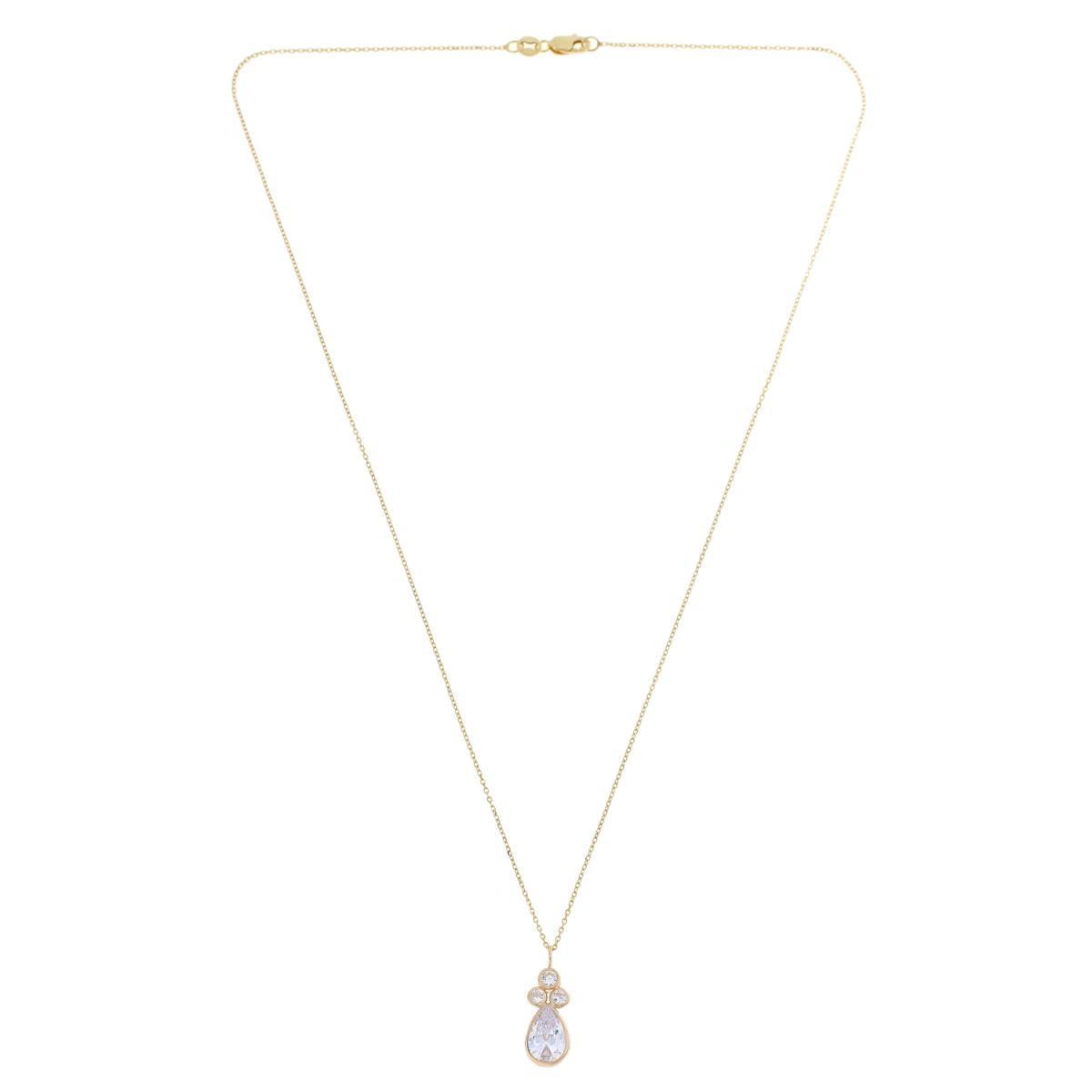 The pendant features a captivating cluster design—round and pear-shaped stones arranged in a graceful floral-inspired pattern that catches the light from every angle. Suspended from an 18-inch gold chain, this necklace adds instant sophistication to both day and evening looks.