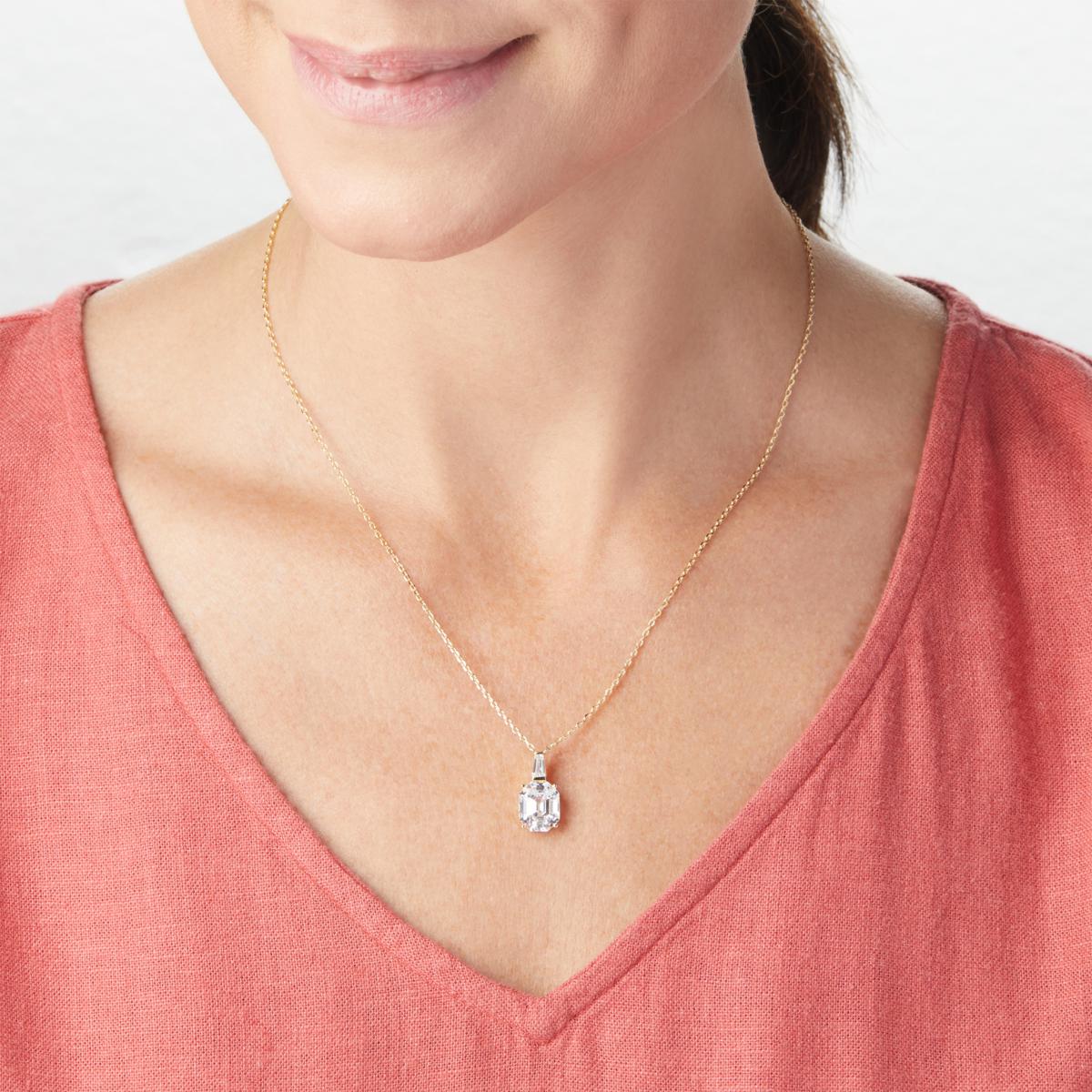 Elegantly shapeconscious, this drop necklace's Cuboidcut stone features lots of gorgeous geometry for vibrant, vintageinspired sparkle that lights up any outfit.