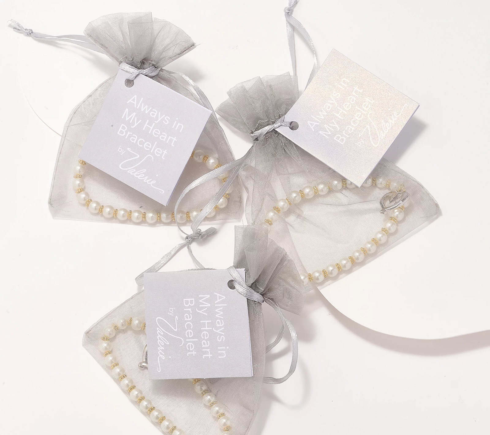 These inspirational bracelets will remind you of those you hold dear to your heart. The lovely set features a beaded design paired with a beautiful heart-within-a-heart charm. Each bracelet arrives in its own sheer gift bag, ready for giving. From The Valerie Parr Hill Collection.