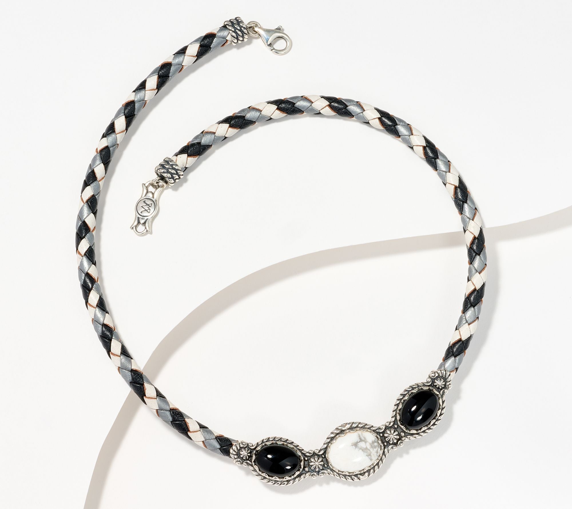 Need an accessory to tie together your latest look? Reach for this mixed material necklace as your fashion-forward focal point that combines gemstone beauty with braided leather texture. From American West Jewelry.