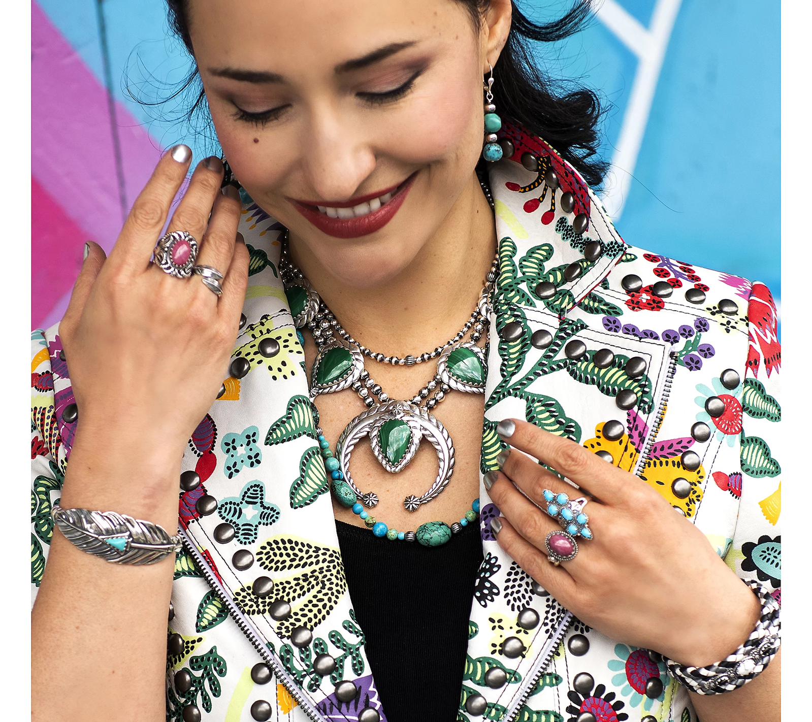 Bring on the beautiful blues and gorgeous greens! This colors of turquoise bead necklace makes a vibrant addition to any outfit. From American West Jewelry.