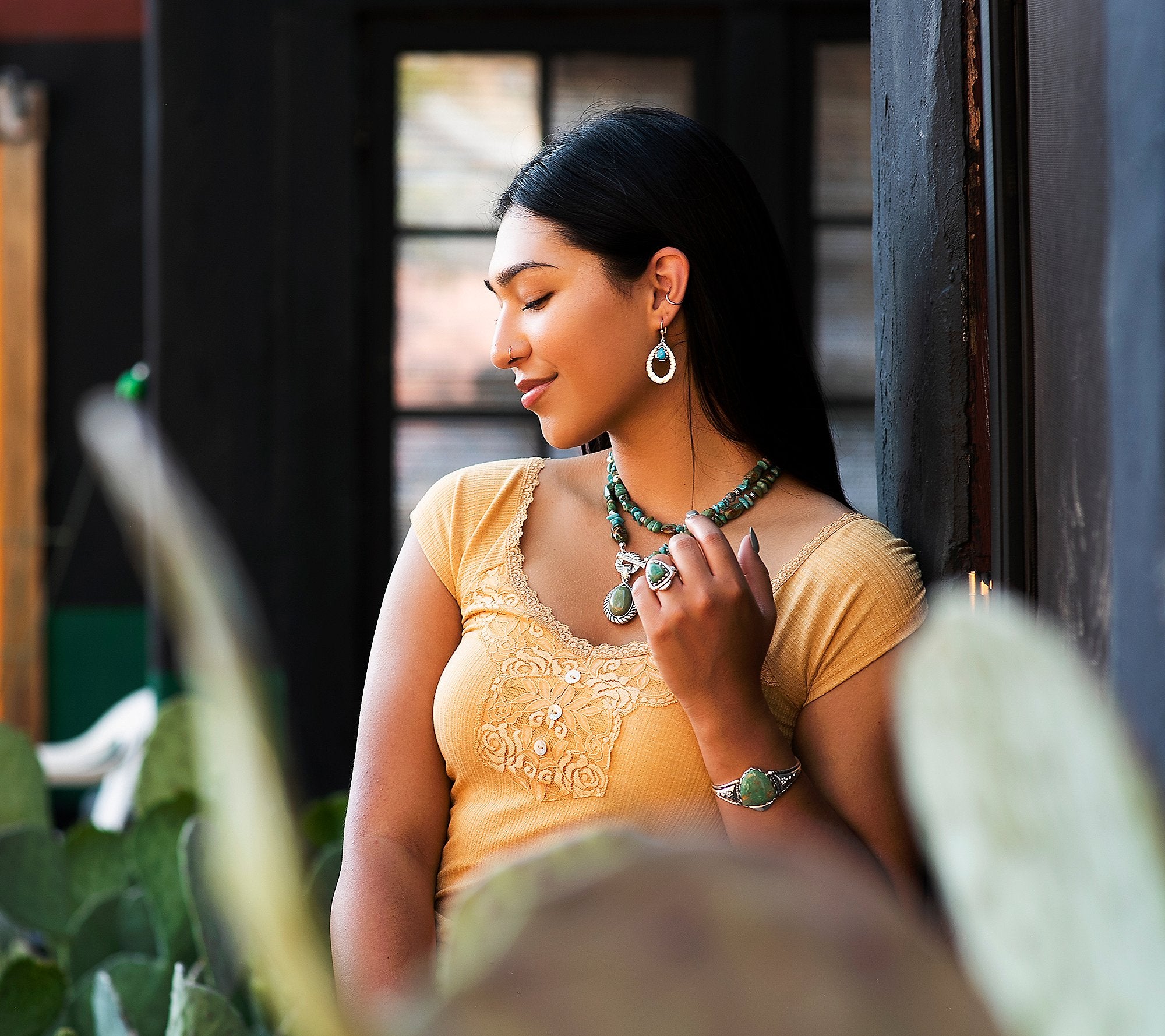 Break free from basic bands and seize the spotlight with this captivating arrowhead gemstone ring. Concha designs on the shoulders complete the distinctive design with fantastic flair. From American West Jewelry.