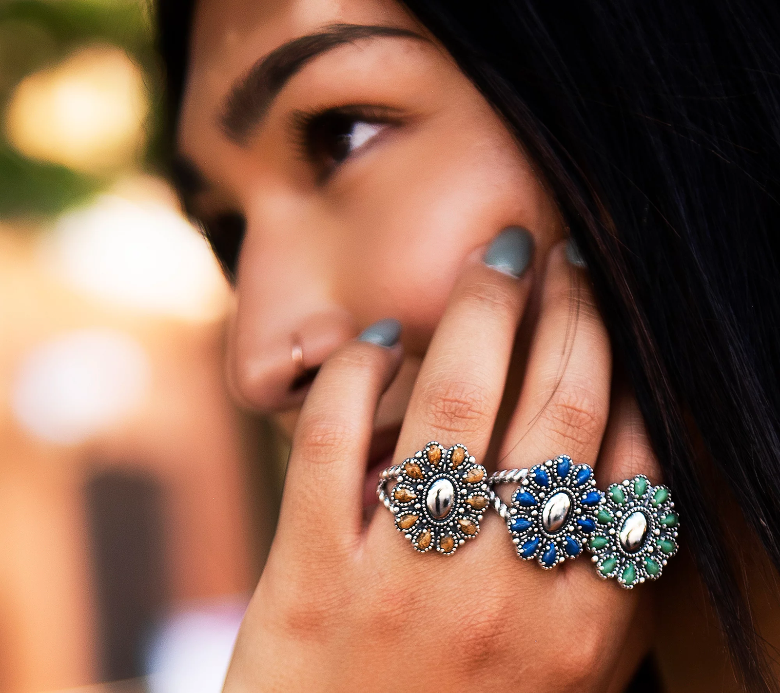 Here's one for the ages. A gemstone cluster ring that sparkles with sterling silver and looks gorgeous in gemstones. From American West Jewelry.