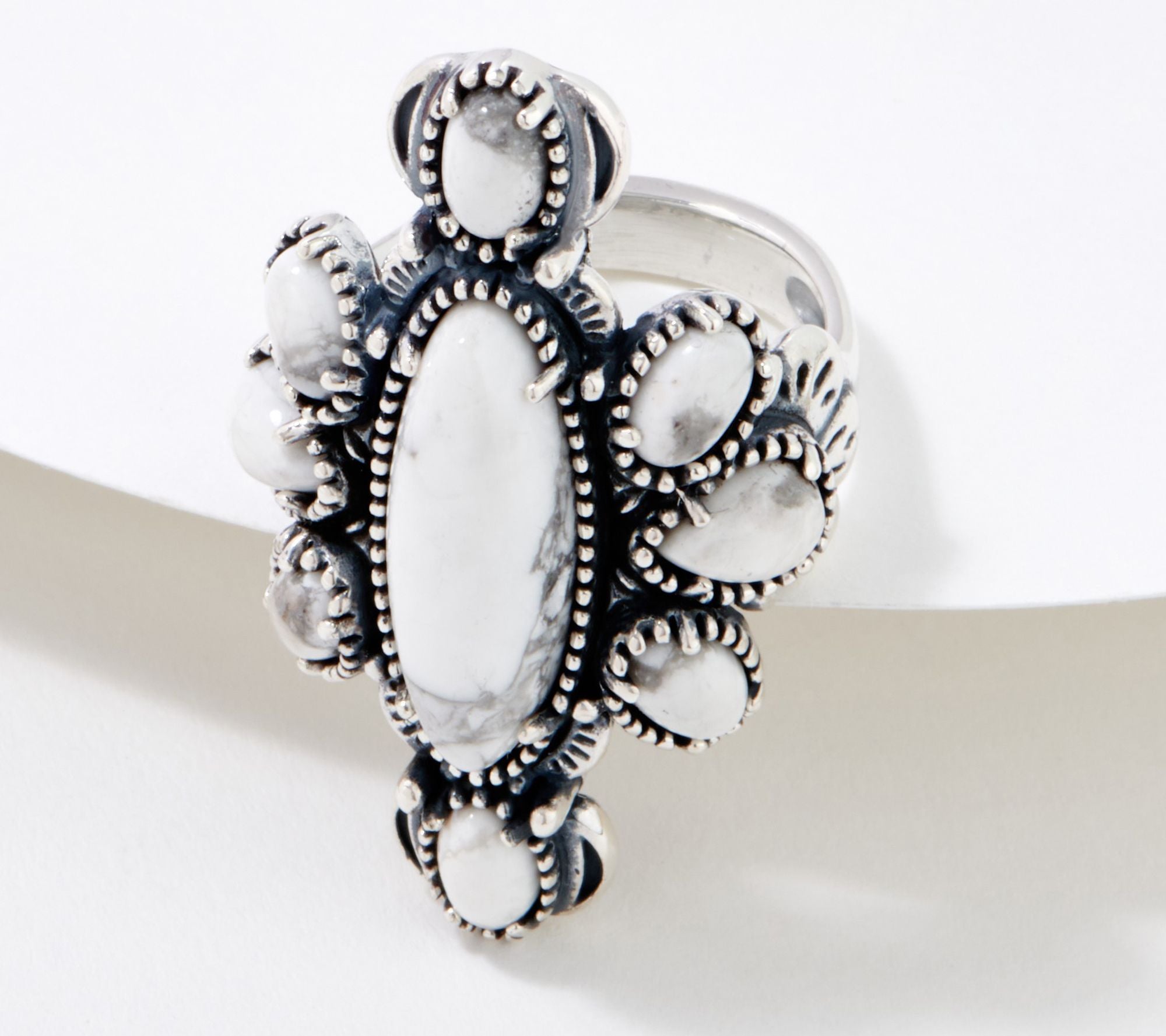 Inspired by the beauty of the Southwest, this sterling silver ring features colorful gemstone cabochons that beam bright like the sun. From American West Jewelry.