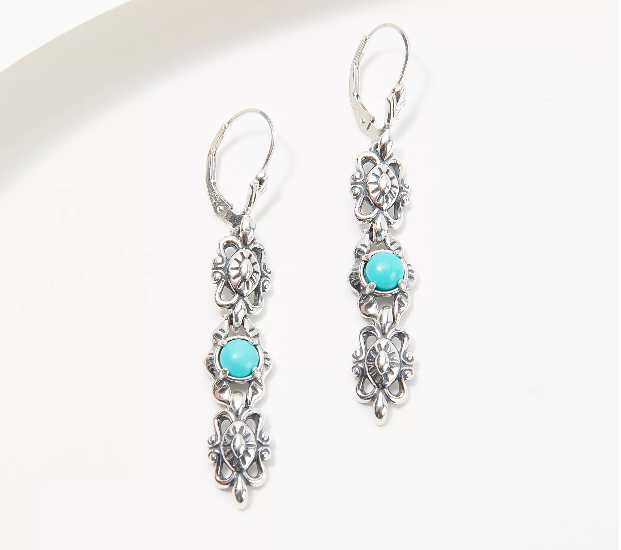 With delicate sterling silver and cabochon enhancements, these gorgeous earrings shine when your hair is in an up-do and they can take center stage. Pair them with jeans and a silky top or that little black dress you've been saving for a special occasion. From American West Jewelry.