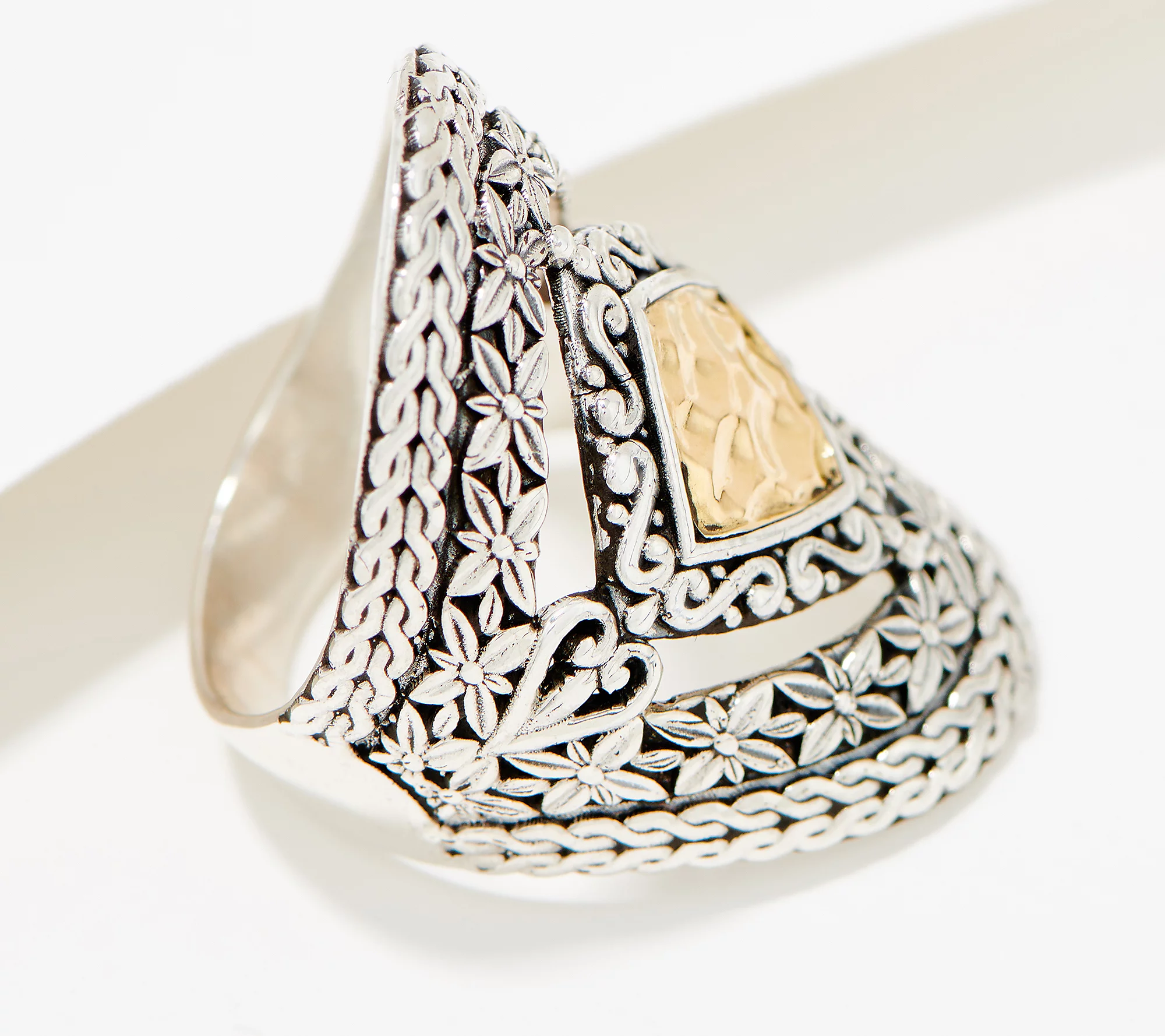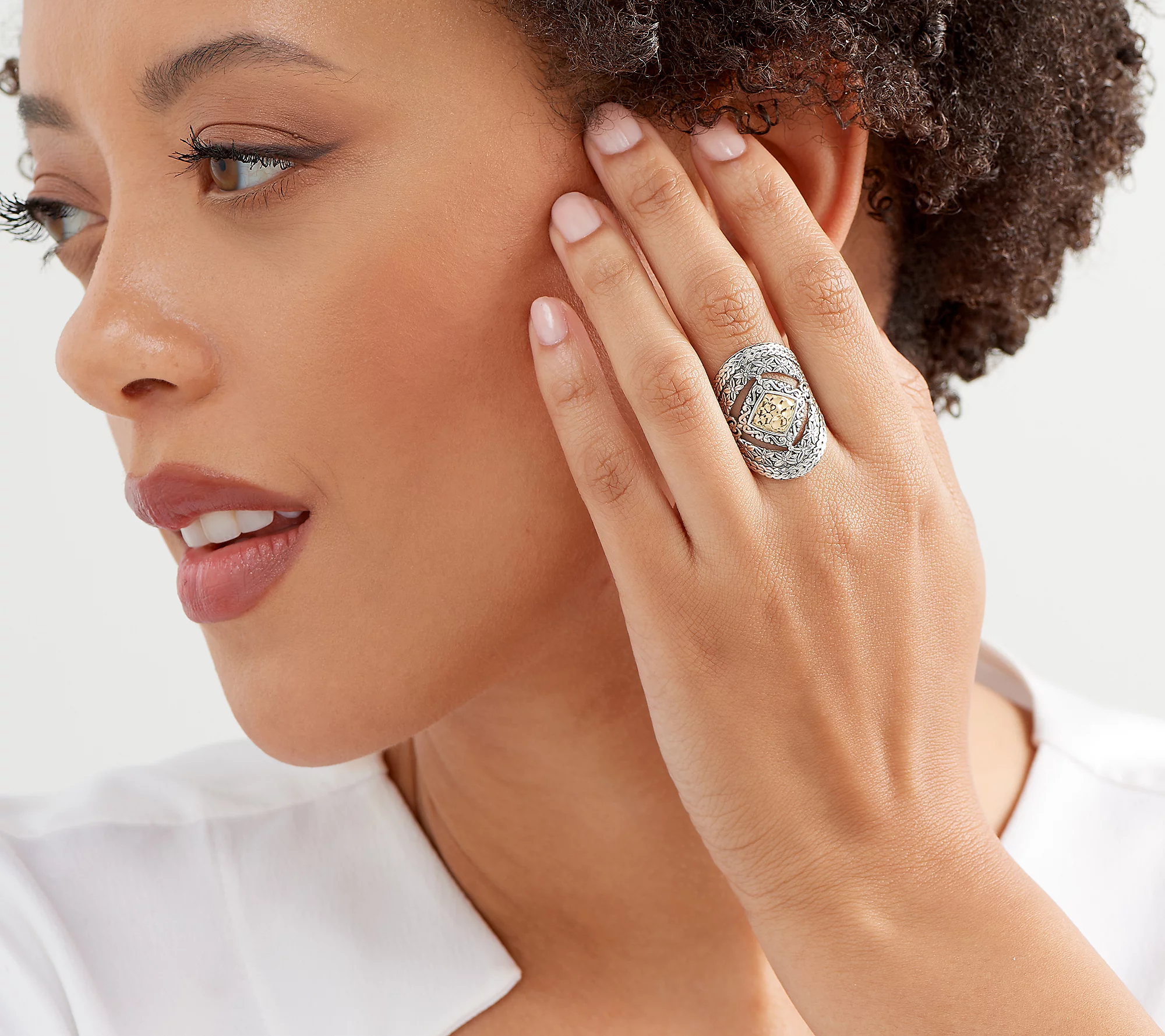 This elongated ring is that posh accessory your jewelry box has been asking for. It allows your everyday outfits to shine with a distinct style everyone will notice. From Artisan Crafted.