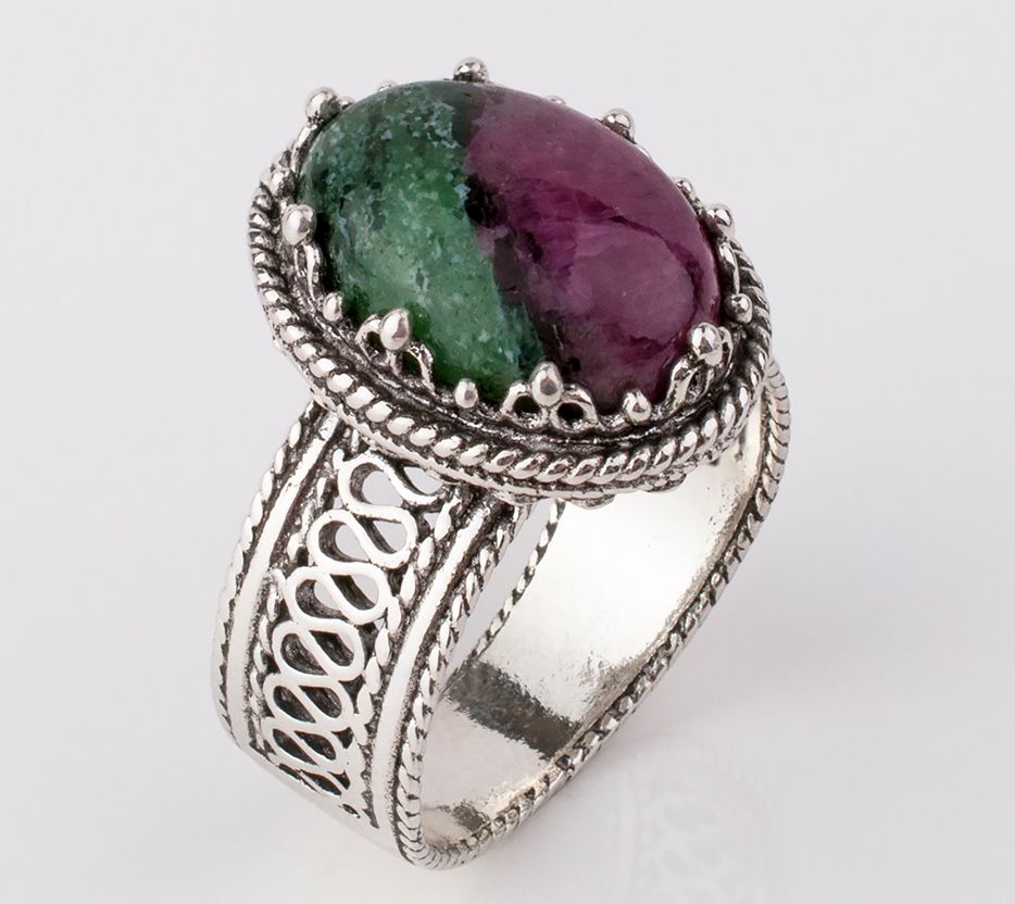 Light up your look with this exquisite oval ruby zoisite ring. It has a truly unique design.