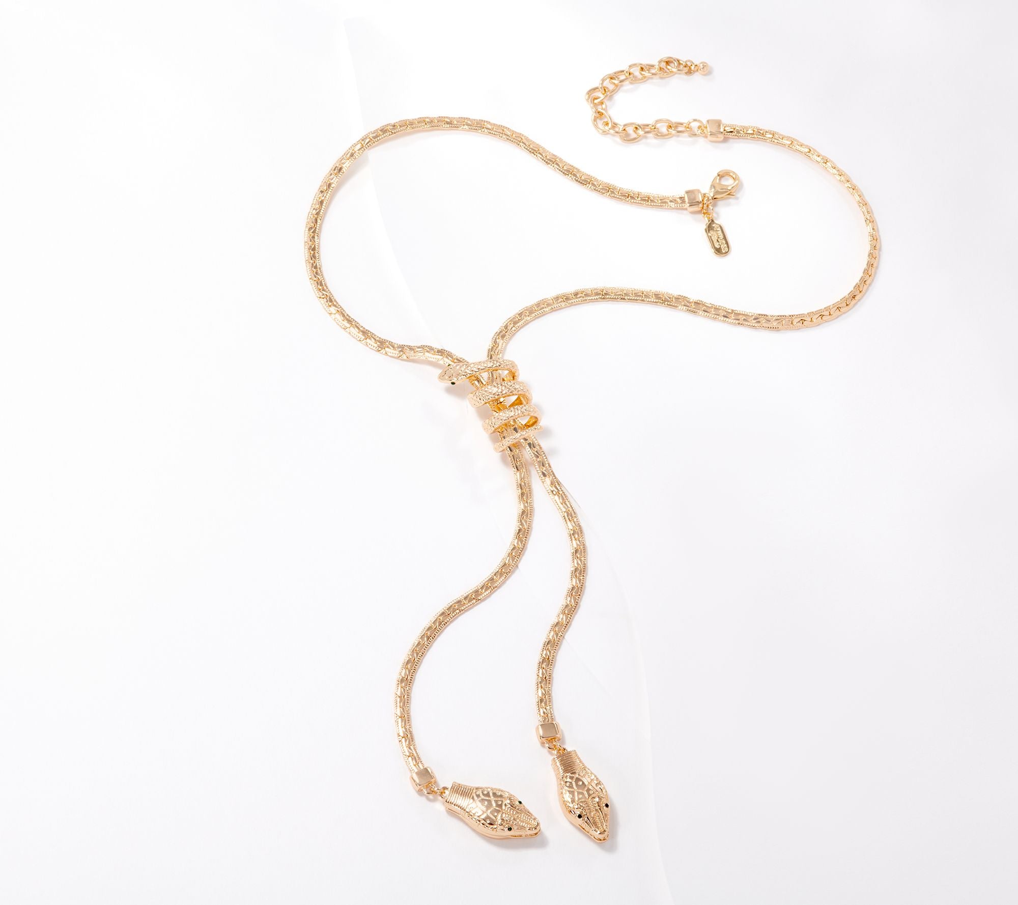 Charm them with this unique lariat necklace featuring a scintillating snake design. From Women with Control.