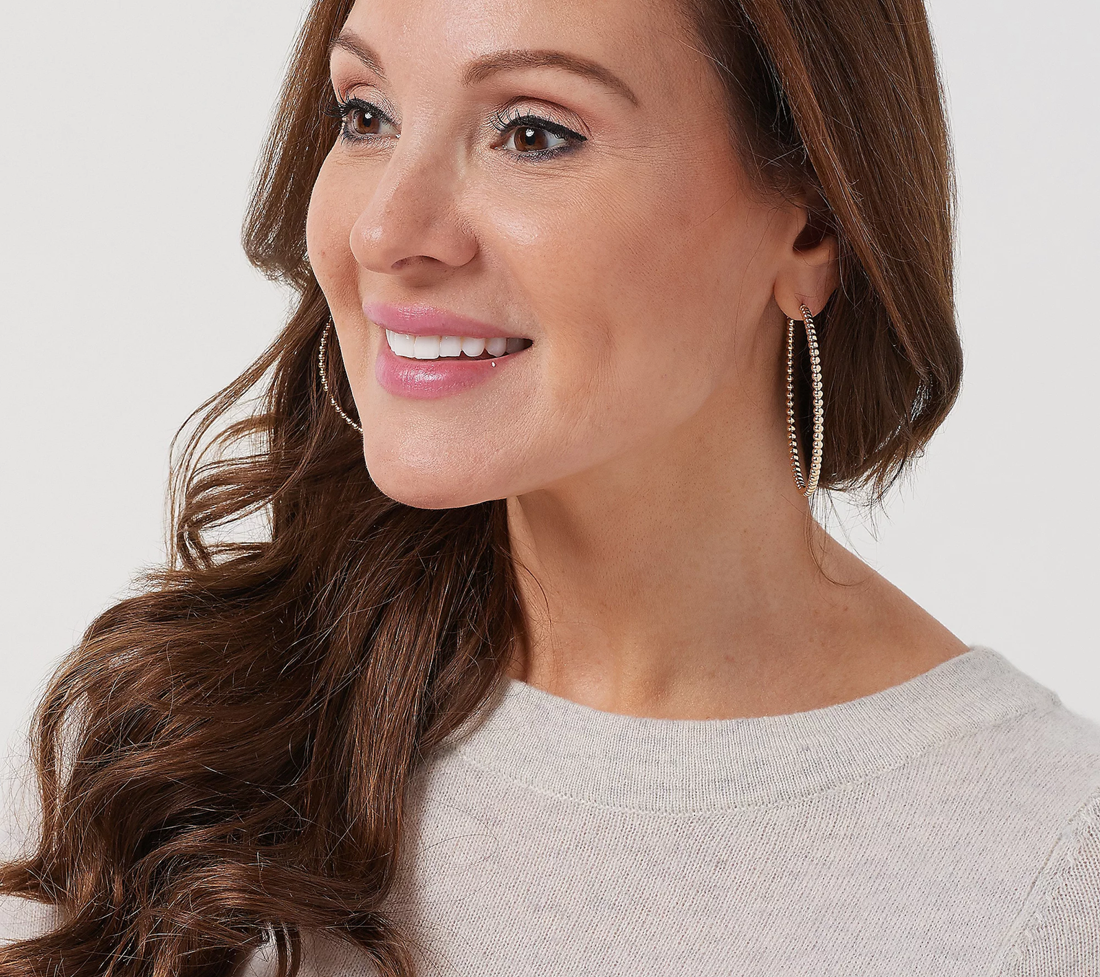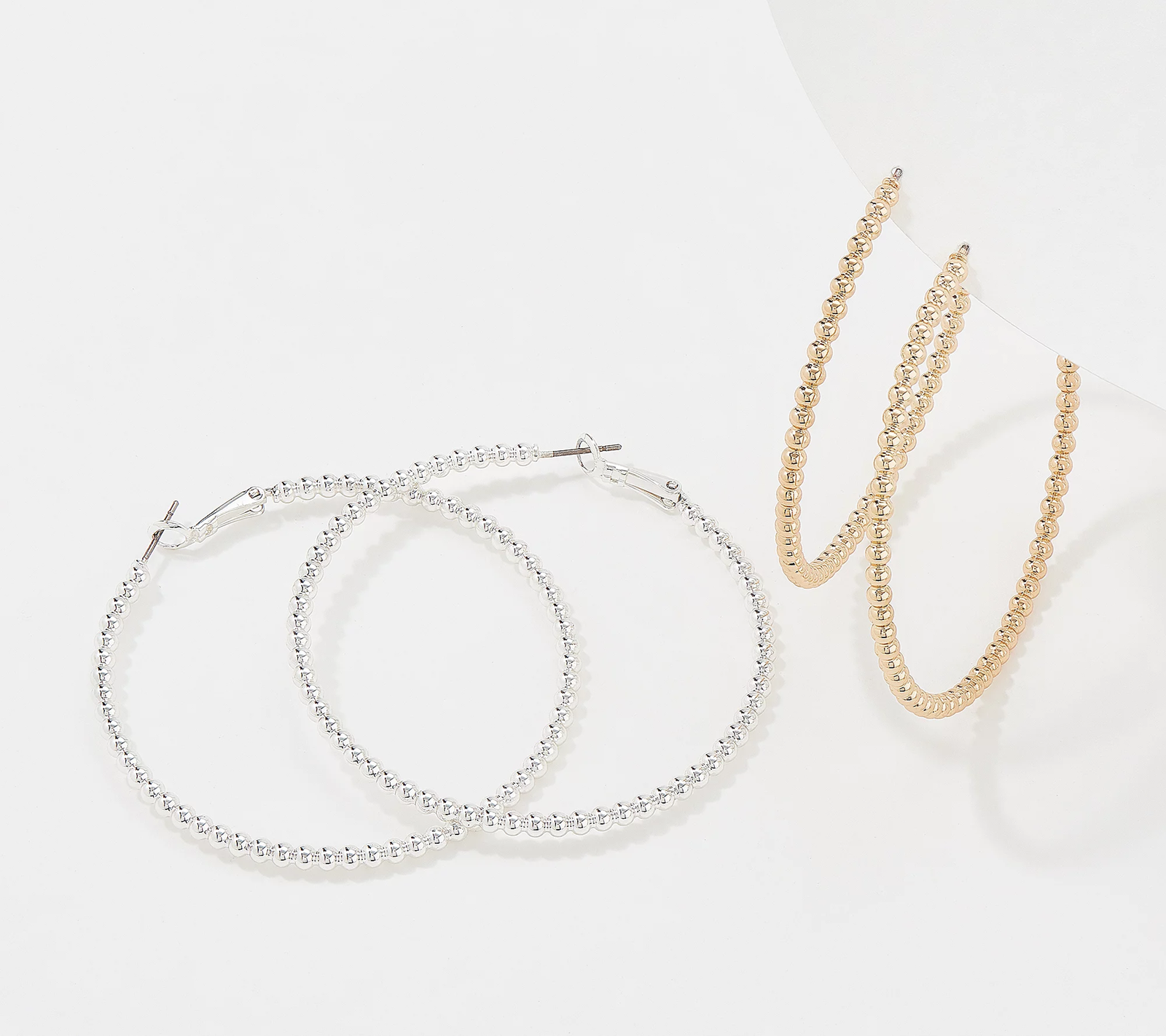 Beaded hoops -- like this silvertone and goldtone set -- are just the accessory that goes with everything. Talk about versatility! From Women with Control®.