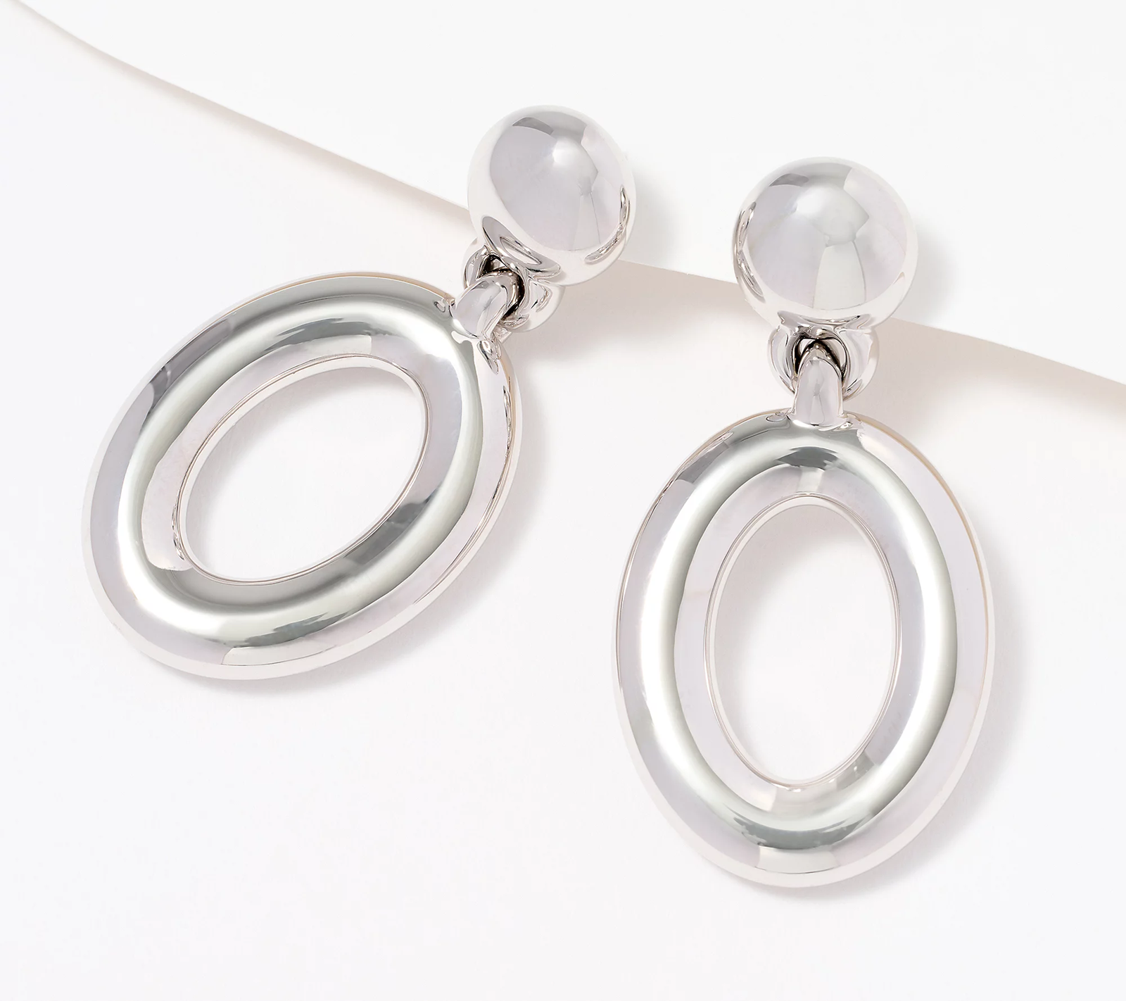 Hoops too heavy? Lighten up your jewelry collection with these oval dangle earrings crafted out of 14K gold over resin, so you get the the same bold shine without the weighty burden. From BellaOro.