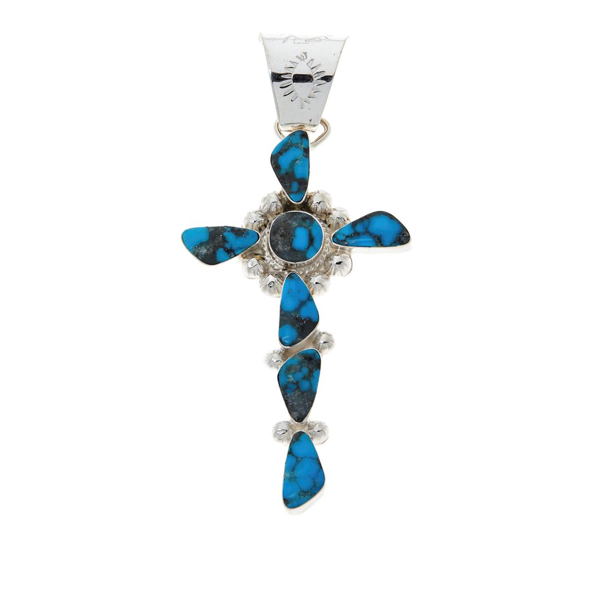 Chaco Canyon Sterling Silver Turquoise Cross Pendant – 3" of Southwestern Elegance