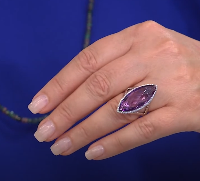 Elevate your jewelry collection with this exquisite Colleen Lopez Marquise-Cut Amethyst Ring—a blend of bold design and timeless elegance.