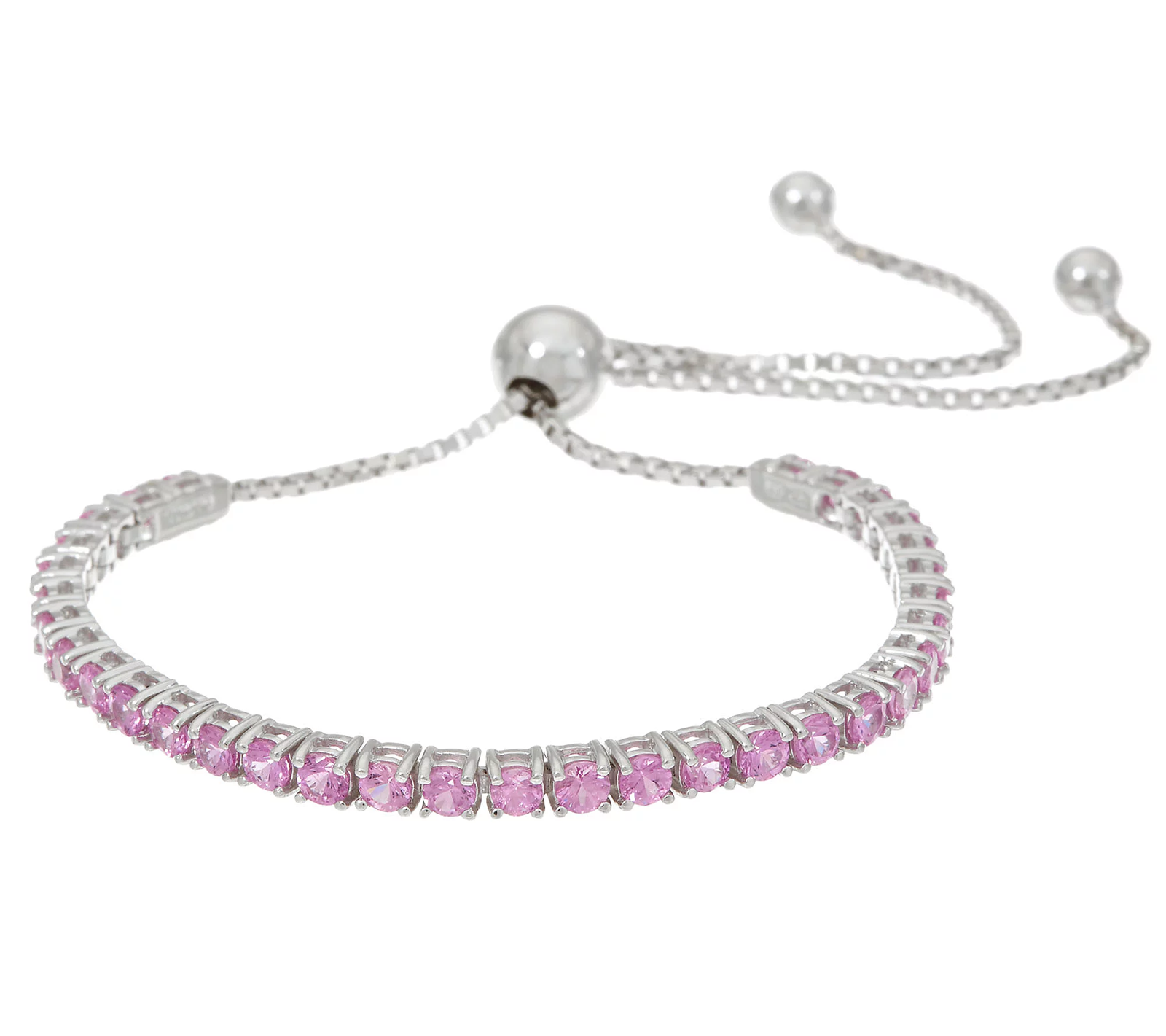 Add a dazzling dash of color to your everyday ensemble with this sterling silver adjustable tennis bracelet. Lined with vibrant sapphire gemstones, it's a chic, vibrant touch that effortlessly goes from the office to a night out with the girls.
