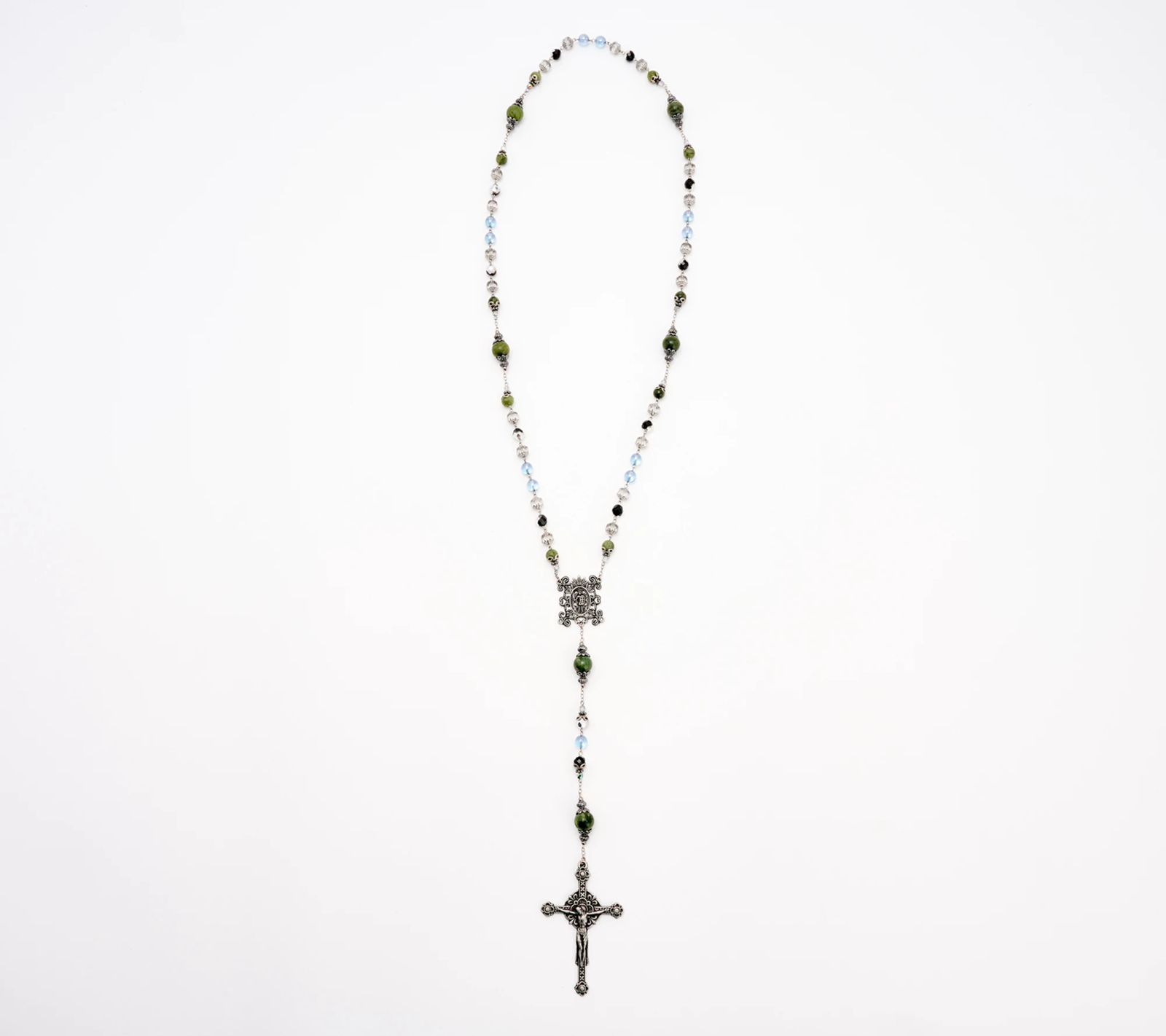 Embrace the beauty of a mother's love with this gorgeous rosary that depicts Jesus, Mary, and St. Michael. Connemara marble beads are a lovely finishing touch.