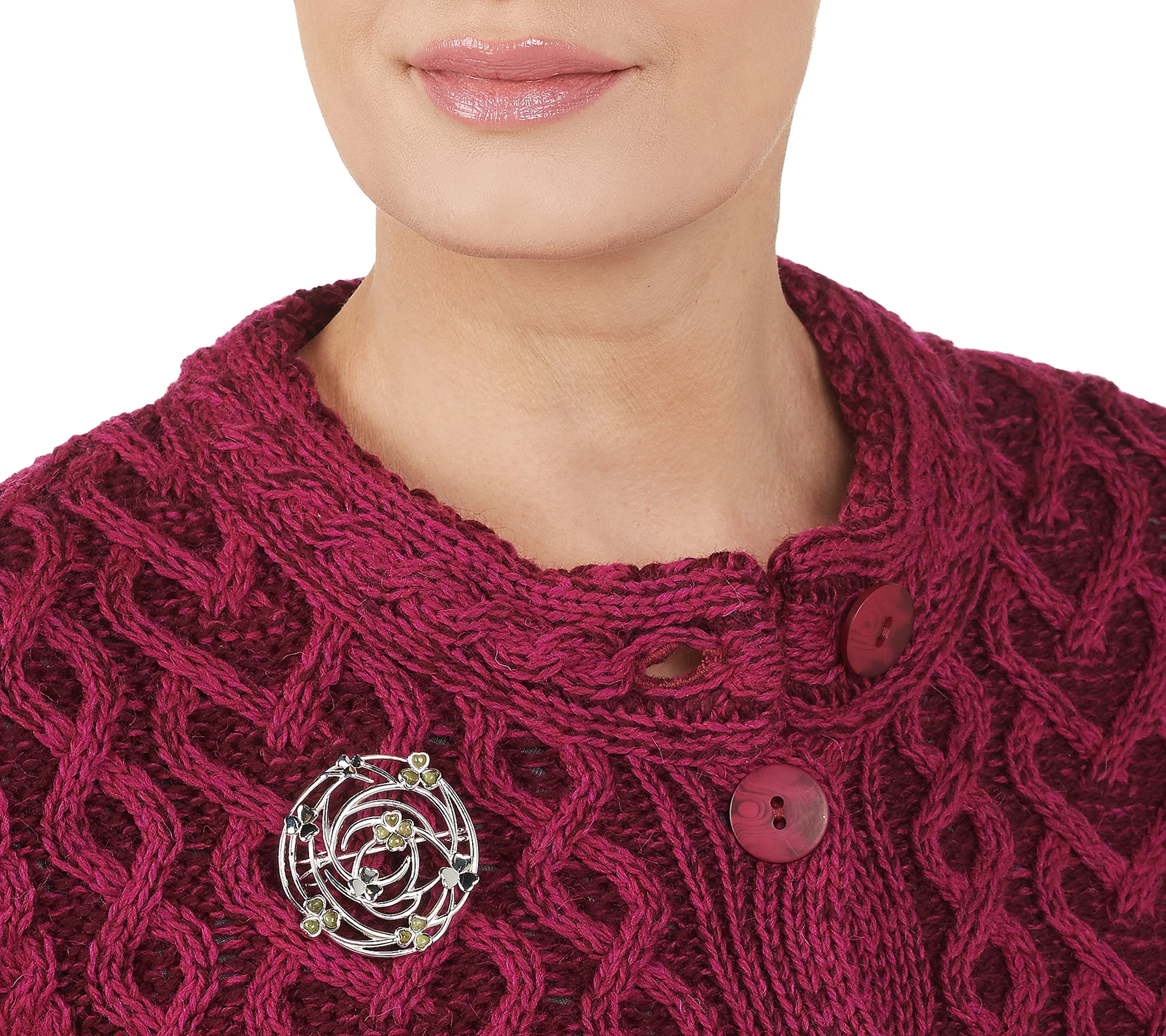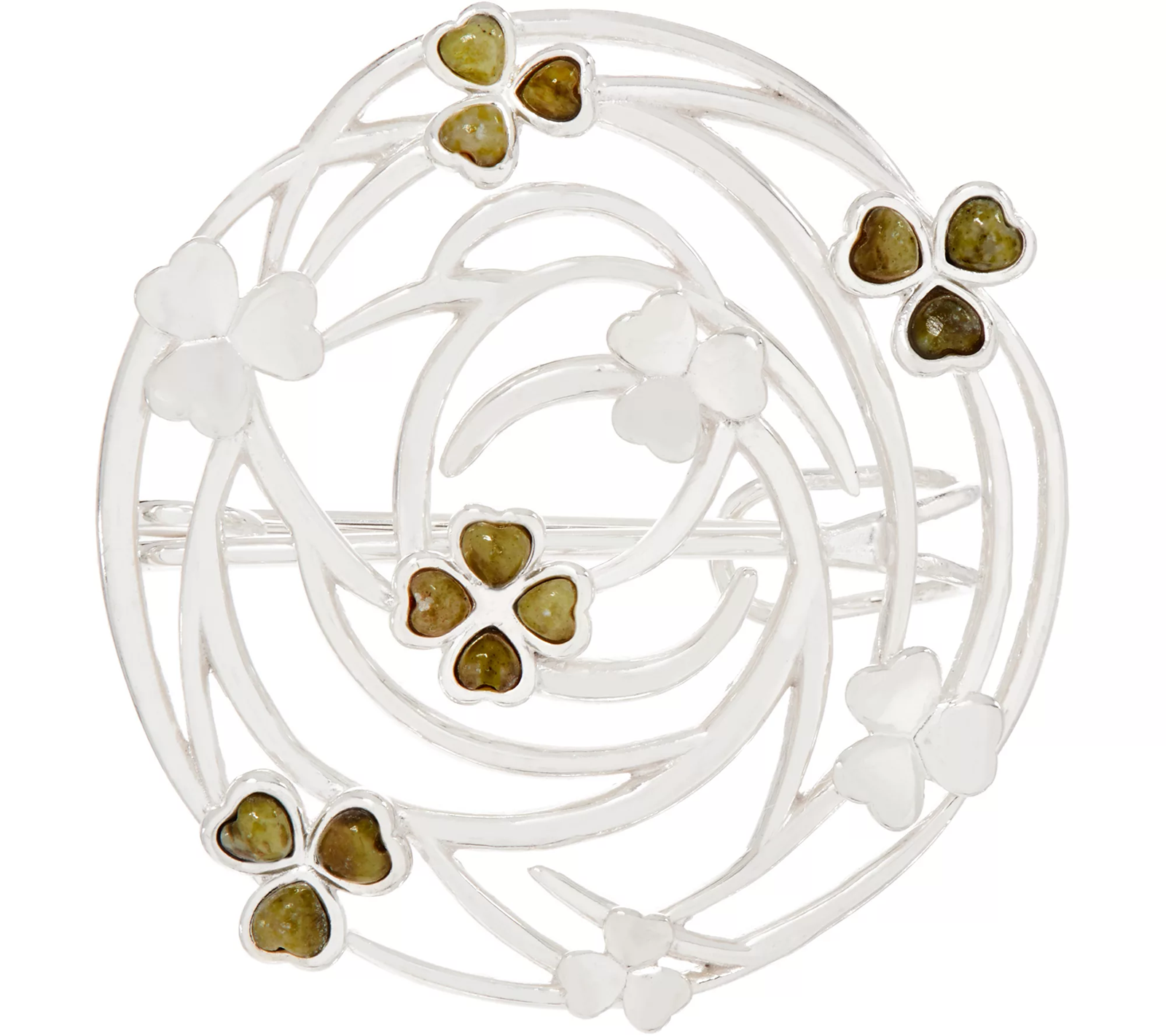 Slip into an Irish accent when you wear this sterling silver sweater pin, boasting an openwork design with Connemara marble shamrocks.