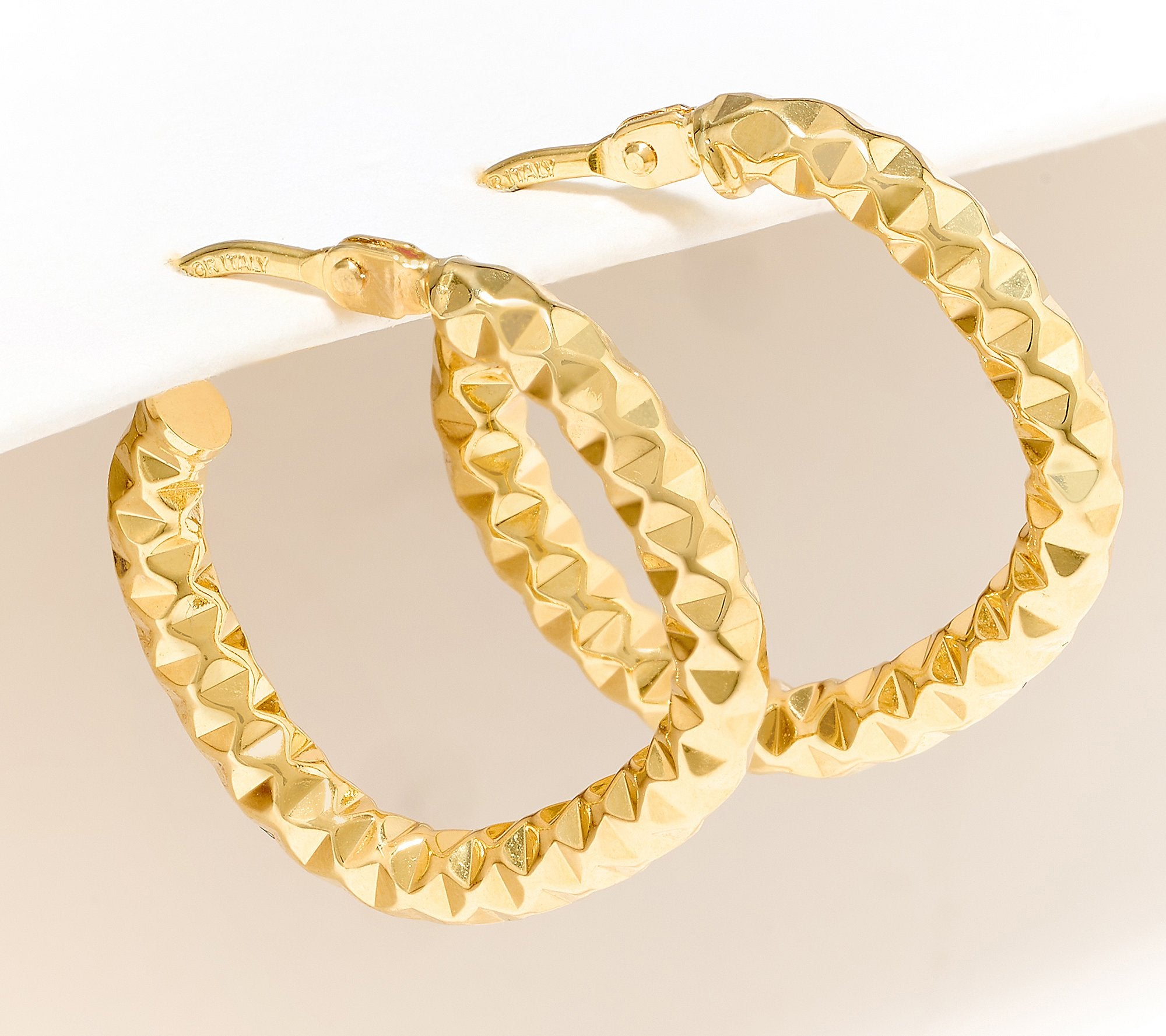 Customize your look by choosing the size, color (yellow or white 14K gold), and finish (polished for classic refinement or diamond-cut for sparkle and dimension). The hollow hoops are lightweight with easy snap-bar closures that keep you in comfort for the duration of the day.