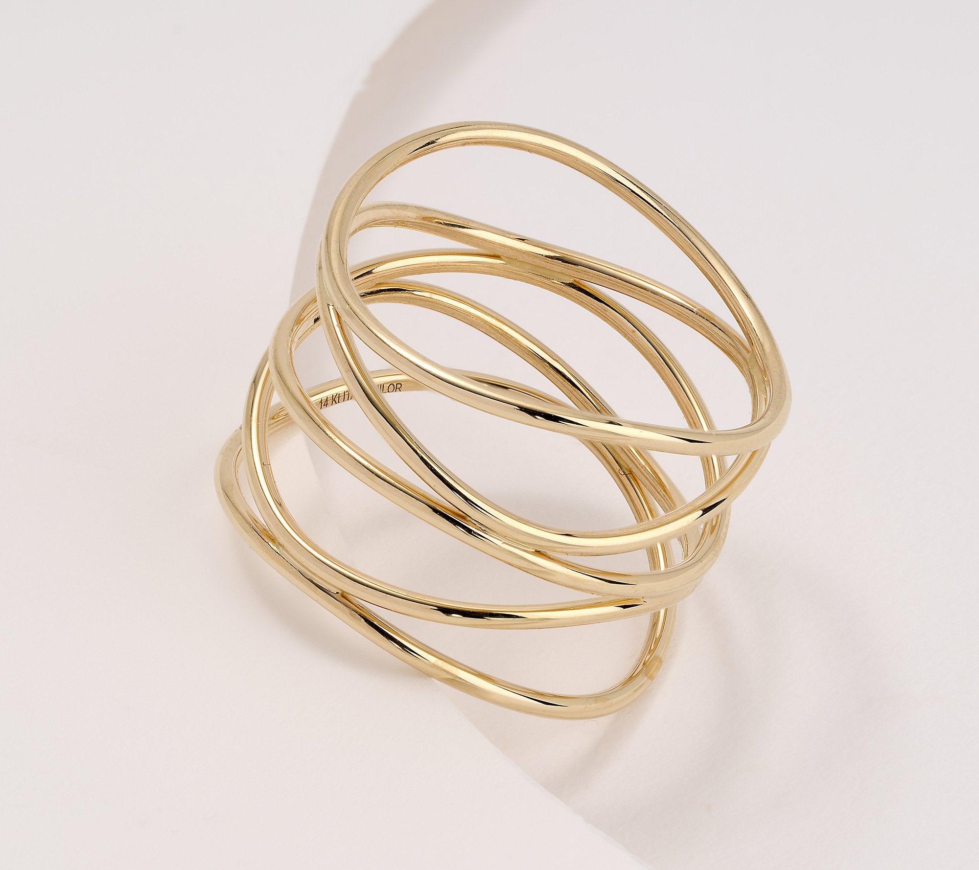 Time for some new bling? Featuring polished and wrapped bands of 14K gold, this striking ring makes a fabulous addition to your signature look. From David Markstein.