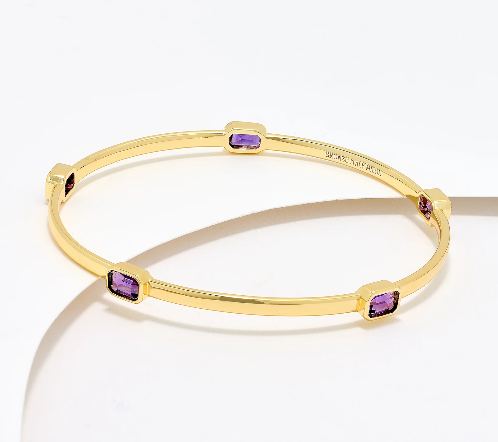 Choosing the perfect accessory is all about making a statement. This slip-on bangle delivers a meaningful moment with a stunning station of emerald-cut gemstones. From David Markstein.