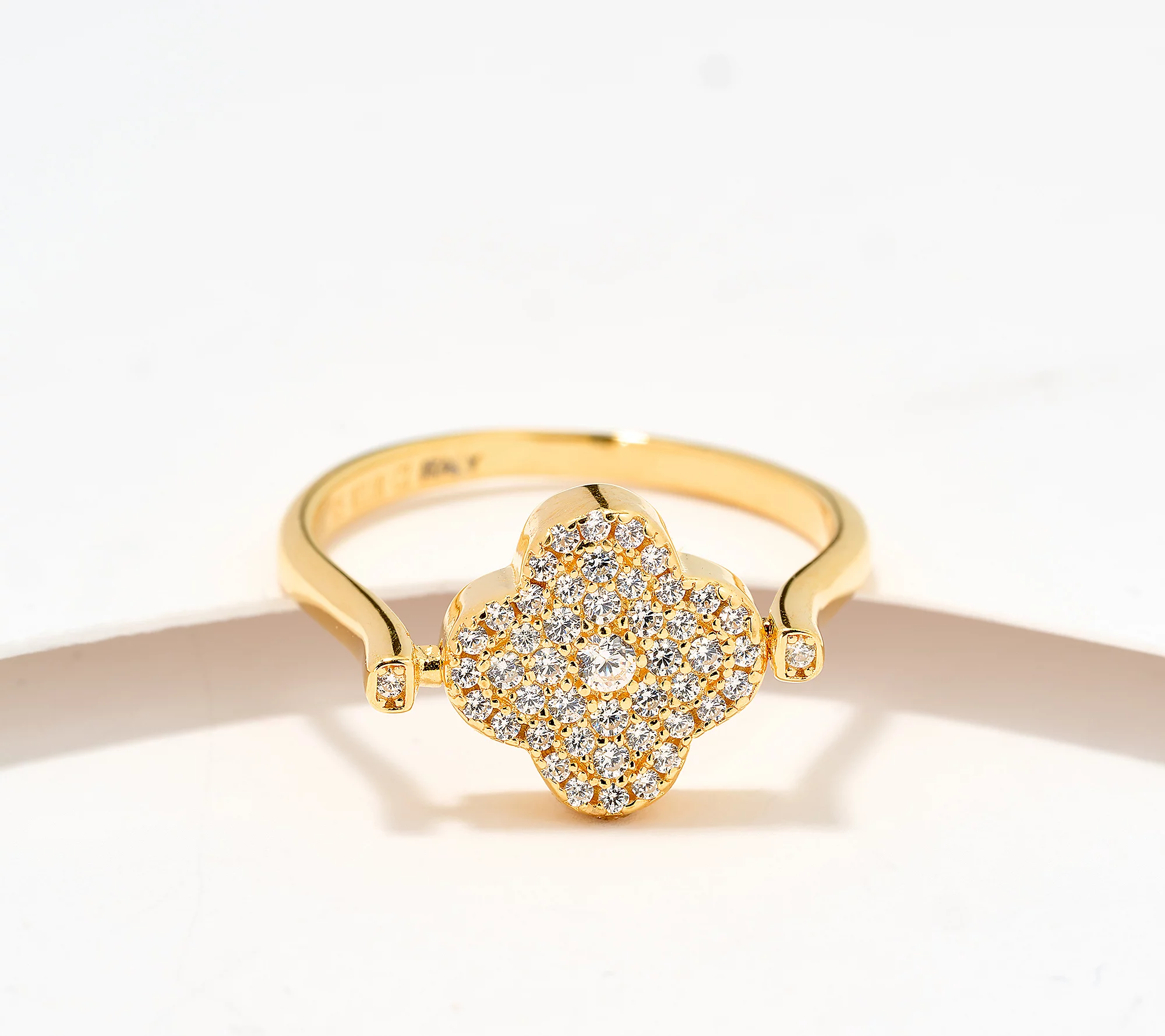 Two luxurious looks in one, this reversible ring will always add a fresh flourish to any fashion statement. One side is a celebration of sparkle with the quatrefoil design covered in cubic zirconia. Flip it to the other side for something more subdued -- a polished onyx gemstone creates a chic shape in a bold black color. From David Markstein.