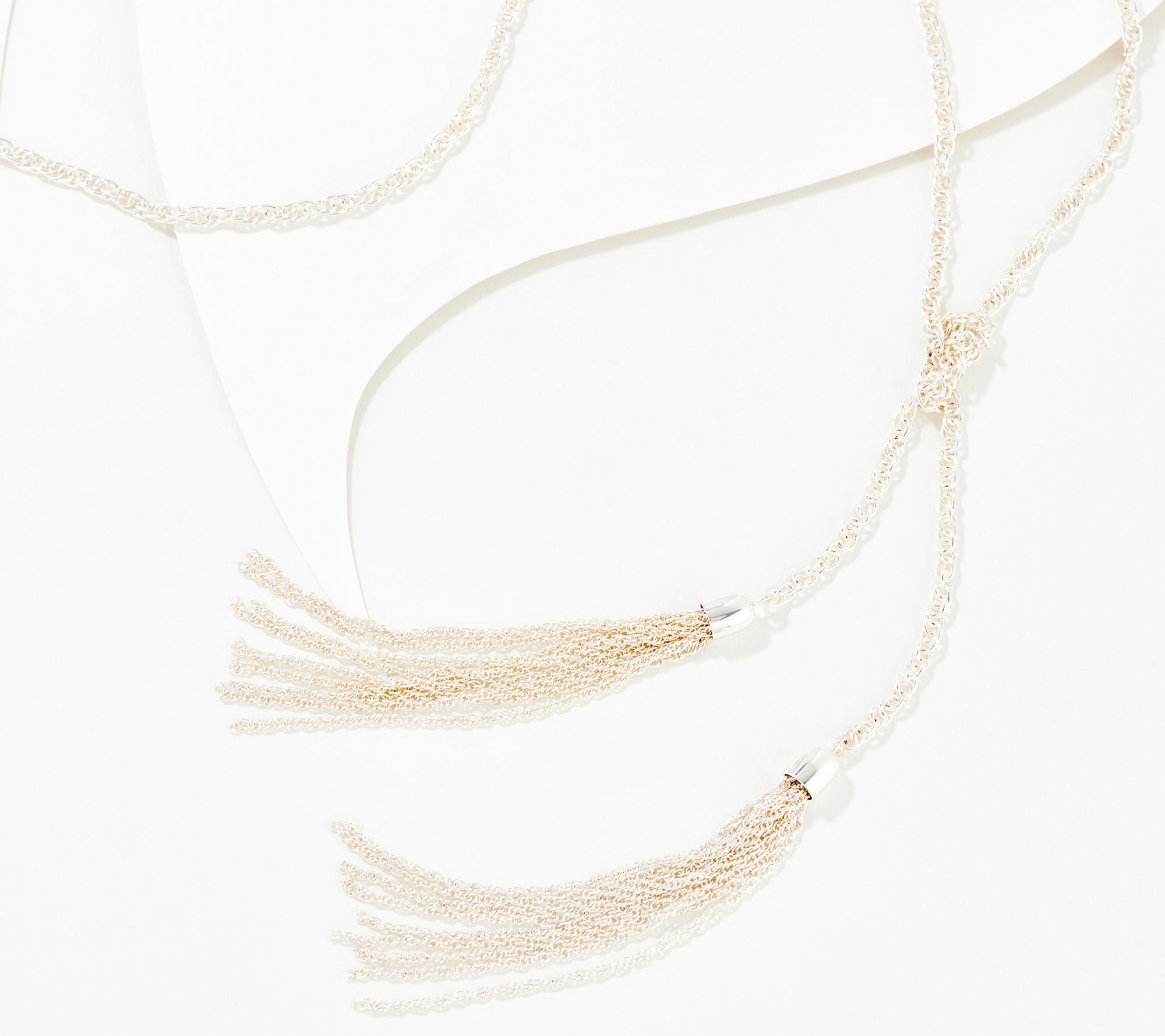 Let this metallic tassel drop necklace give your OOTDs that sparkling burst of chicness they need. Dress up your most casual 'fits with it -- sneaks, leggings, and a tee never looked so glamorous. From Denim & Co.® Fashions.