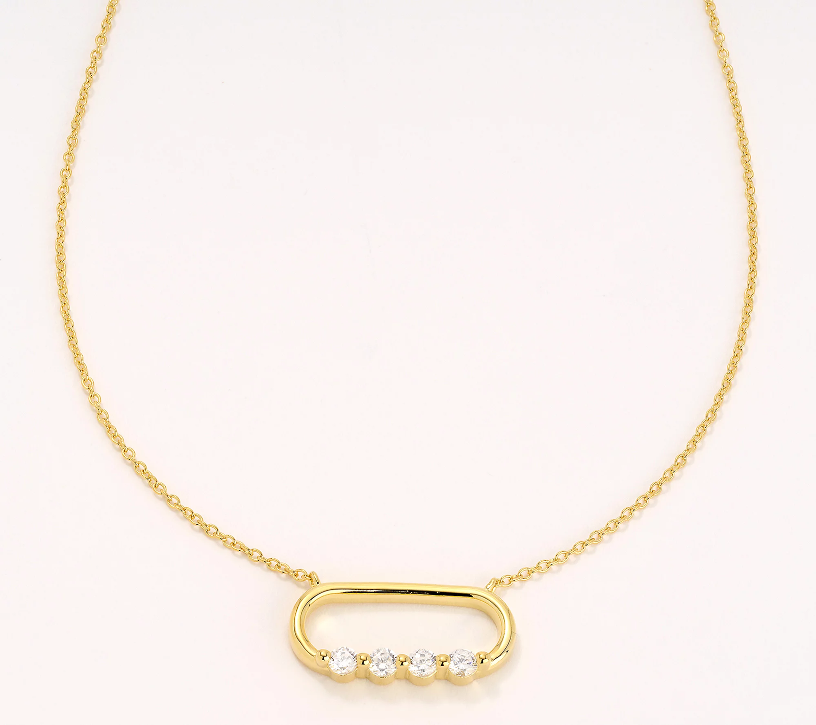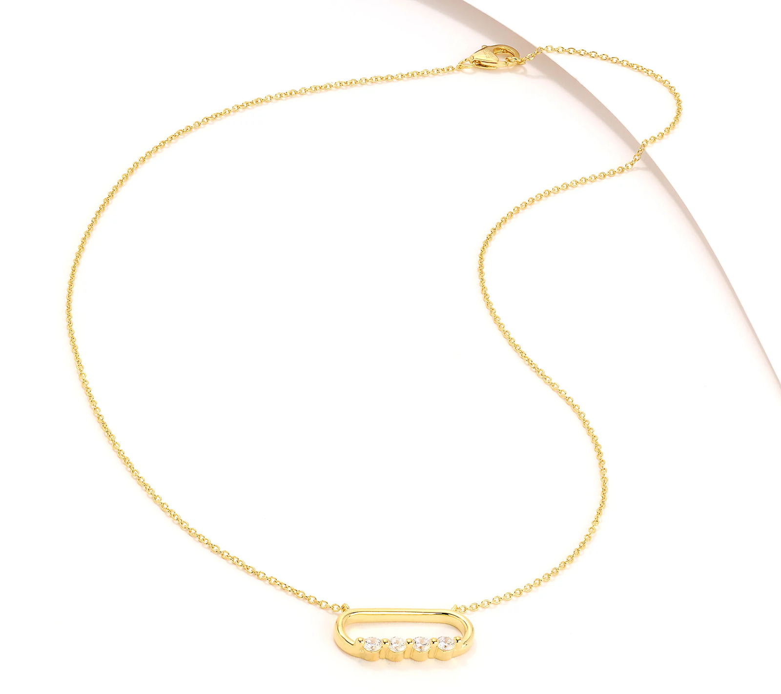 Update your jewelry collection with this on-trend treasure that infuses your wardrobe with chic shape and shine. The open carabiner shape at the center of this unique necklace creates a fresh focal point with cubic zirconia Diamonique simulated diamonds as accents.