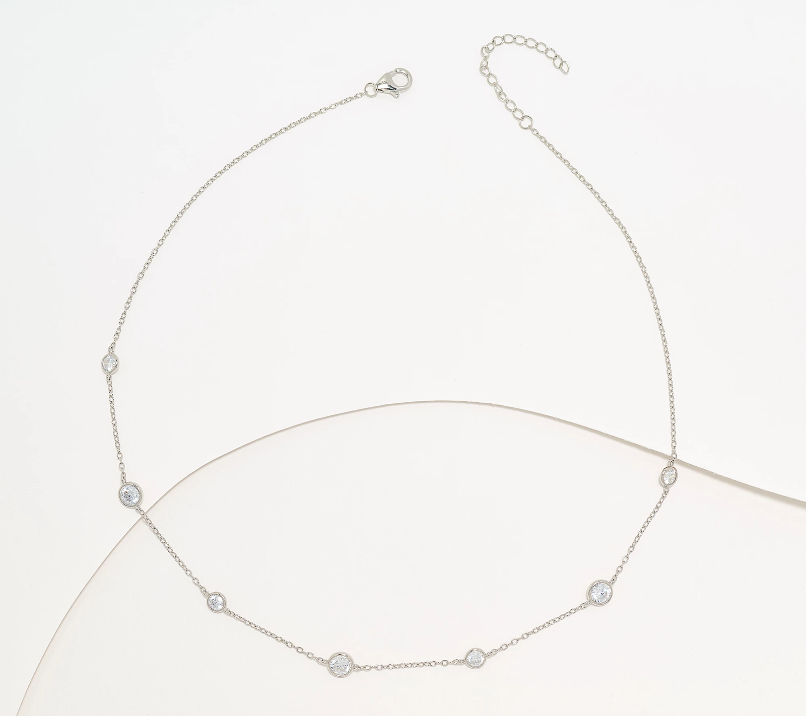 Bring a bit polish to your daily denim or a spot of sparkle to a little black dress with this brilliant station necklace.
