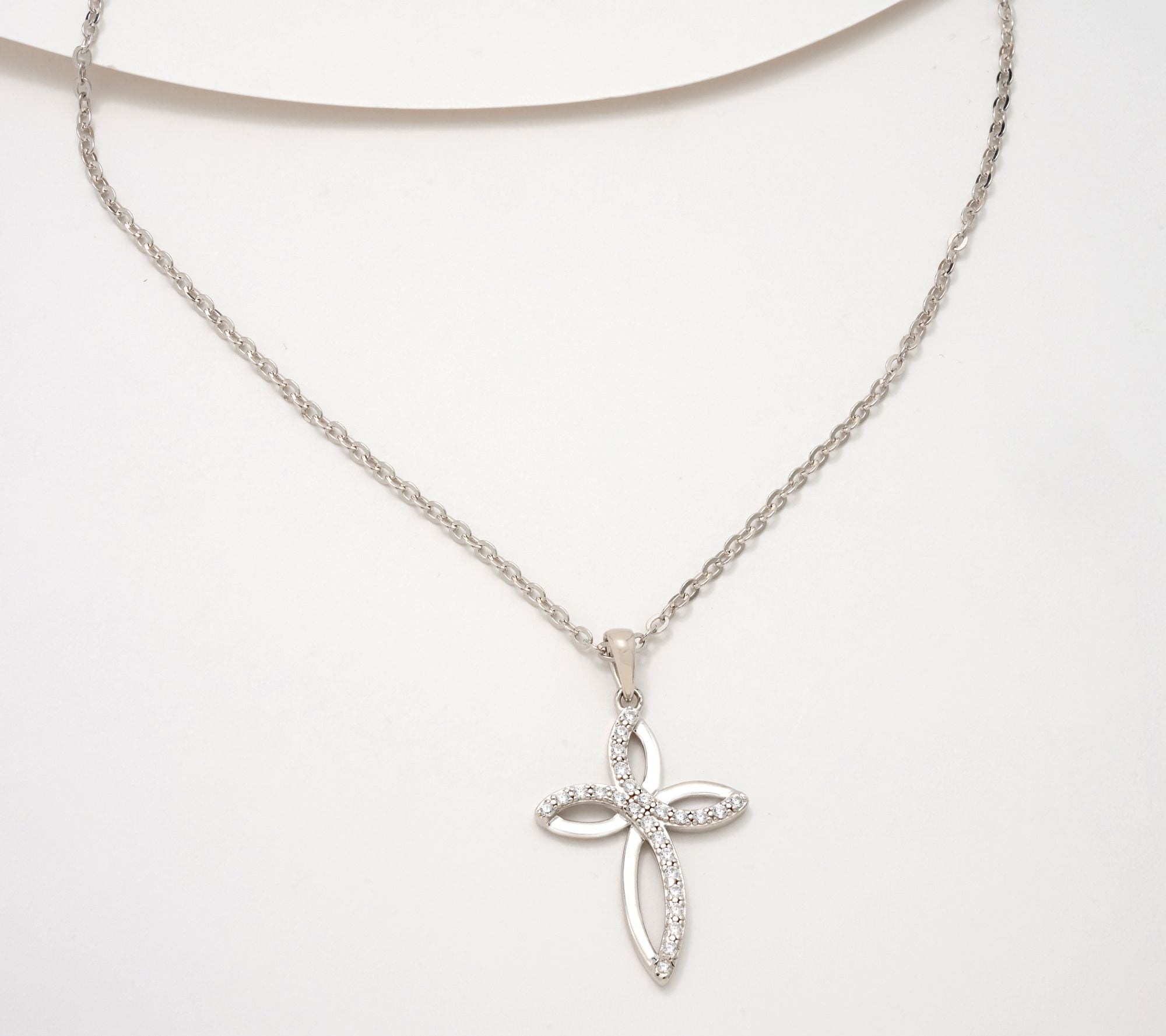 You're never fully dressed without... a display of your faith. This sparkly cross pendant creates impact with a substantial forzatina chain and lay-flat design.
