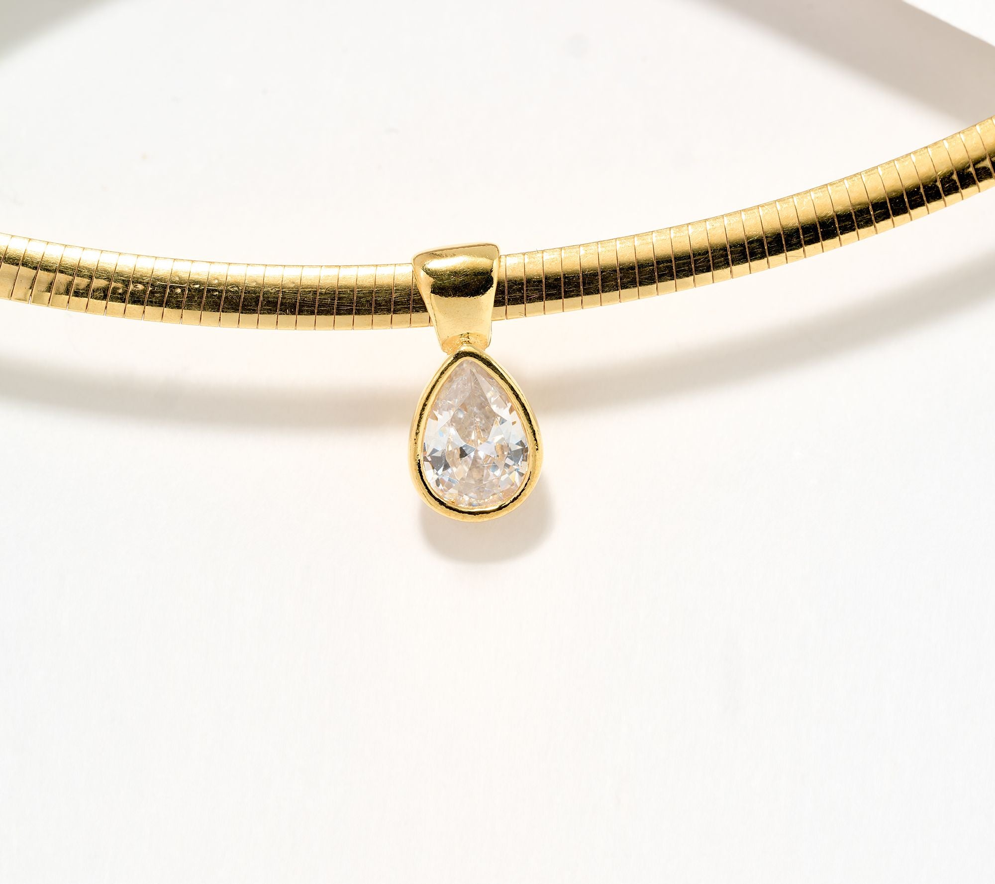 Treat yourself (or someone special) to this omega necklace, complete with a bezel-set cubic zirconia Diamonique simulated diamond solitaire pendant.
