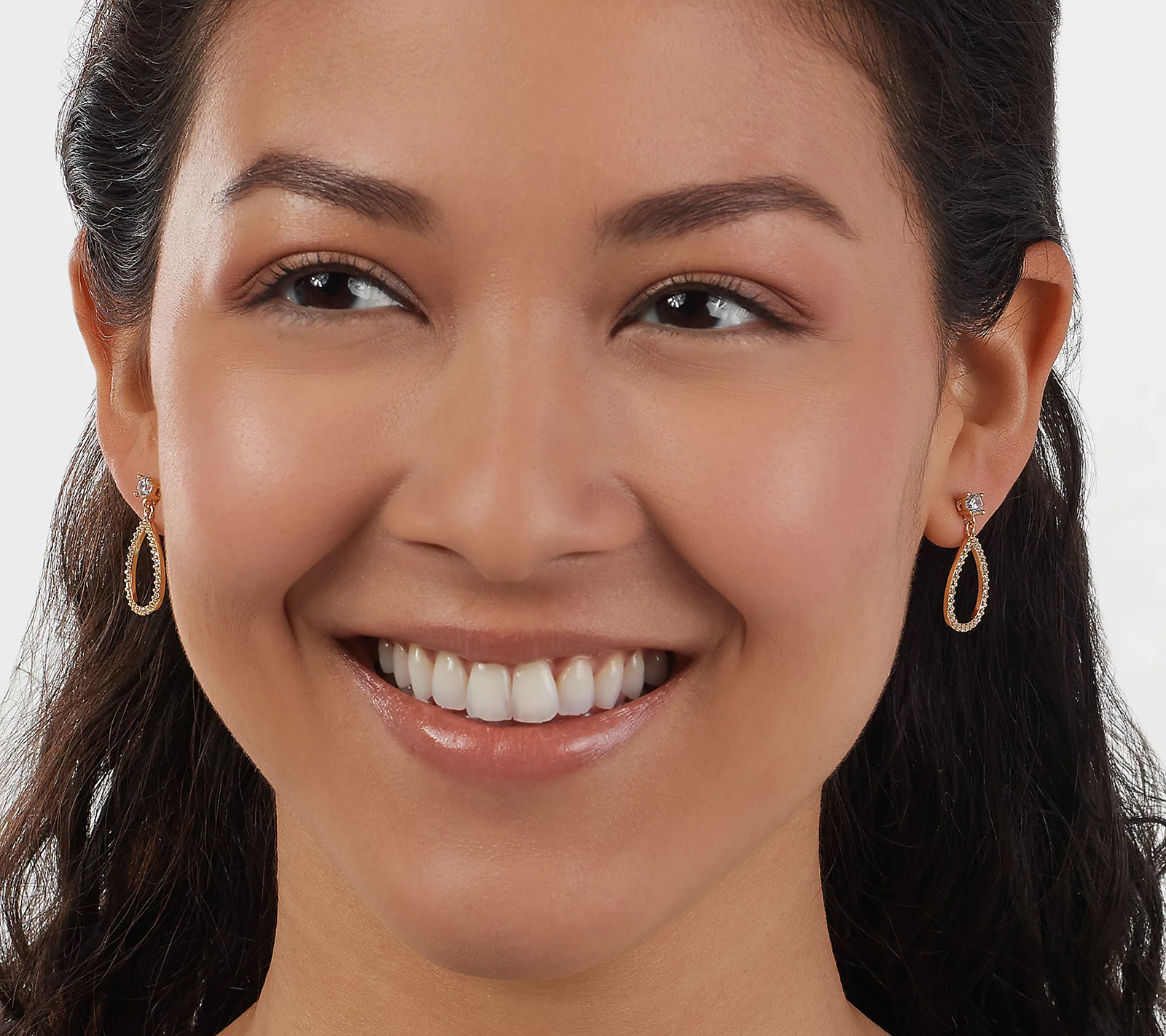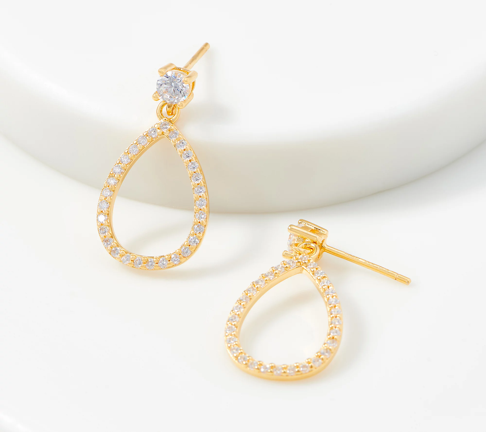 Forget the overly familiar hoop--these pear-shaped drop earrings provide a different kind of dazzle with a front-facing design covered in cubic zirconia Diamonique simulated diamonds.