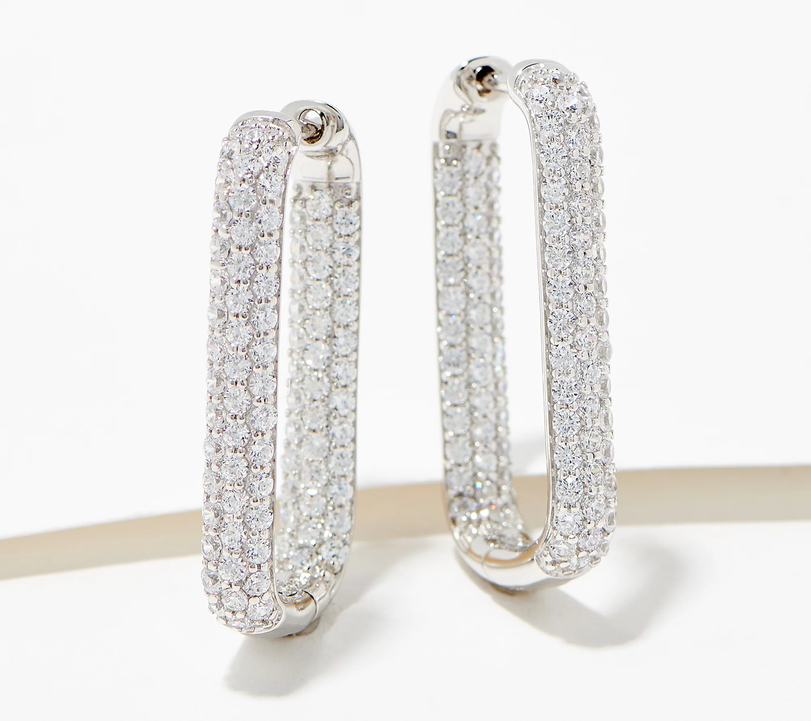 Bring shimmer and sophisticated style to your look with these beautiful earrings, featuring a sparkling inside-out hoop design in an unexpected shape that turns heads.