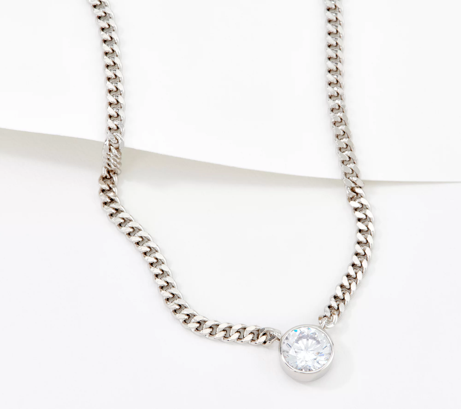 A round, bezel-set cubic zirconia Diamonique simulated diamond gives this solitaire necklace all the glam it needs, while the bold curb link chain enhances the classic design.