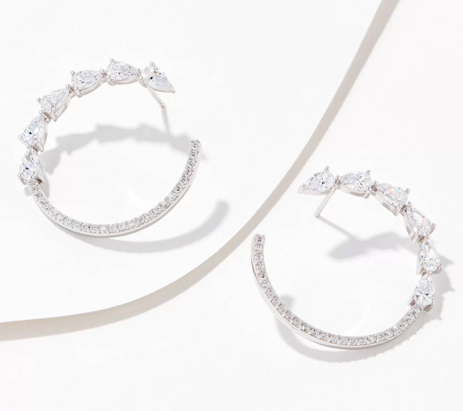 Who doesn't love a good hoop earring? This pair presents a dazzling display with round and pear-shaped cubic zirconia Diamonique simulated diamonds in a front-facing design.