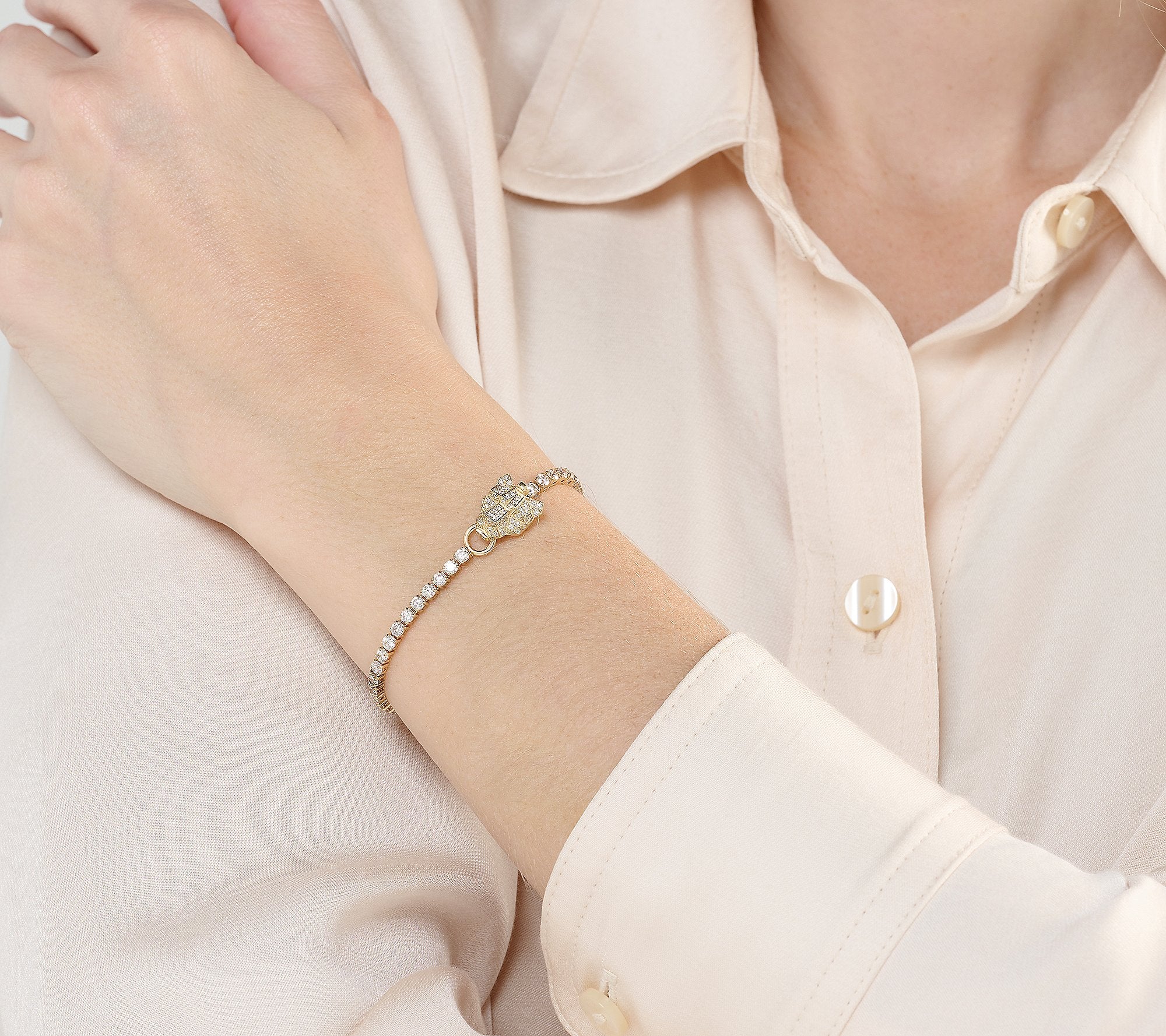Sleek and sophisticated, this panther head bracelet makes a powerful style statement. Just like the beautiful big cat, it will capture the attention of everyone in the room. From Effy Jewelry.