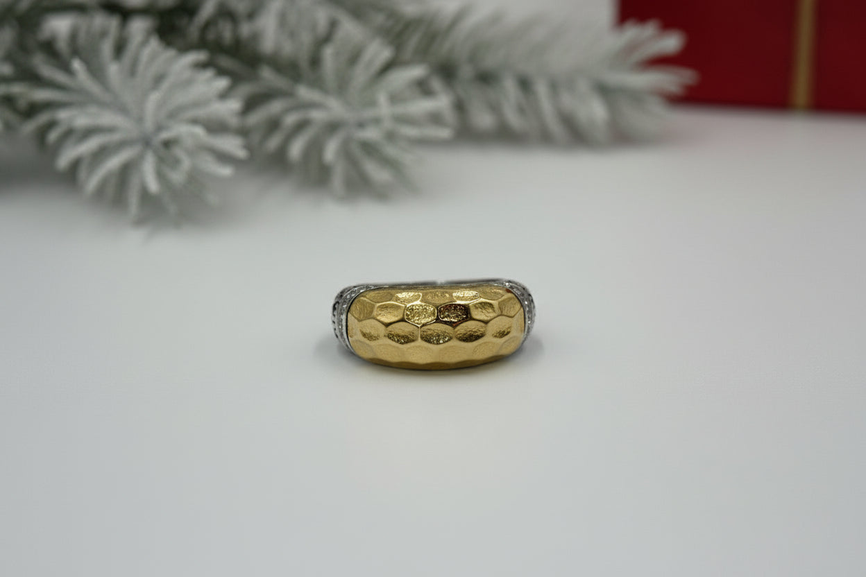Add a touch of modern luxury to your collection with the Emma Skye Stainless Steel Crystal-Accented Hammered 2-Tone Ring. Order yours today and experience the perfect blend of texture, sparkle, and contemporary design!