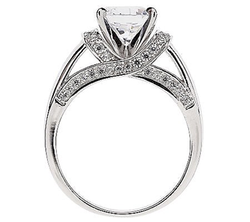 Endless shimmer. This radiant ring dazzles with a bold-but-believable, round, prong-set, 2.00 carat cubic zirconia Diamonique(R) simulated diamond in a brilliant 100-facet cut. Additional round, bead-set Diamonique stones twinkle continuously at the sides and along the uniquely beautiful gallery. Wear the stunner alone, or coordinated with eternity guard rings or a simple wide band to receive compliments galore.