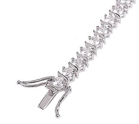 Slip this stunner on your wrist for that distinctive dazzle. Brilliantly crafted, this elegant bracelet is prong set with round Diamonique(R) simulated diamonds, each separated by highly polished S-bars. From Epiphany(R) Platinum Clad(R) Sterling Silver and Diamonique Jewelry.