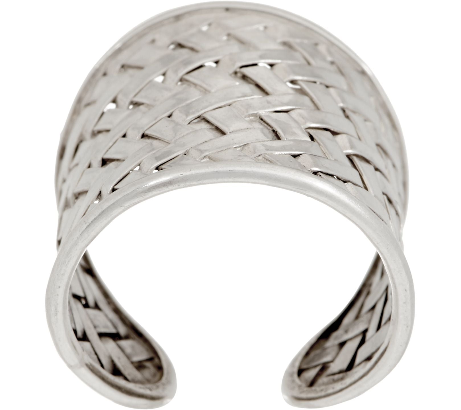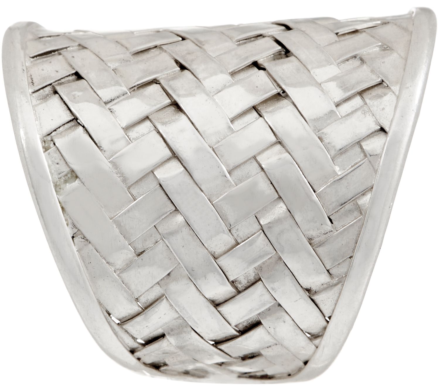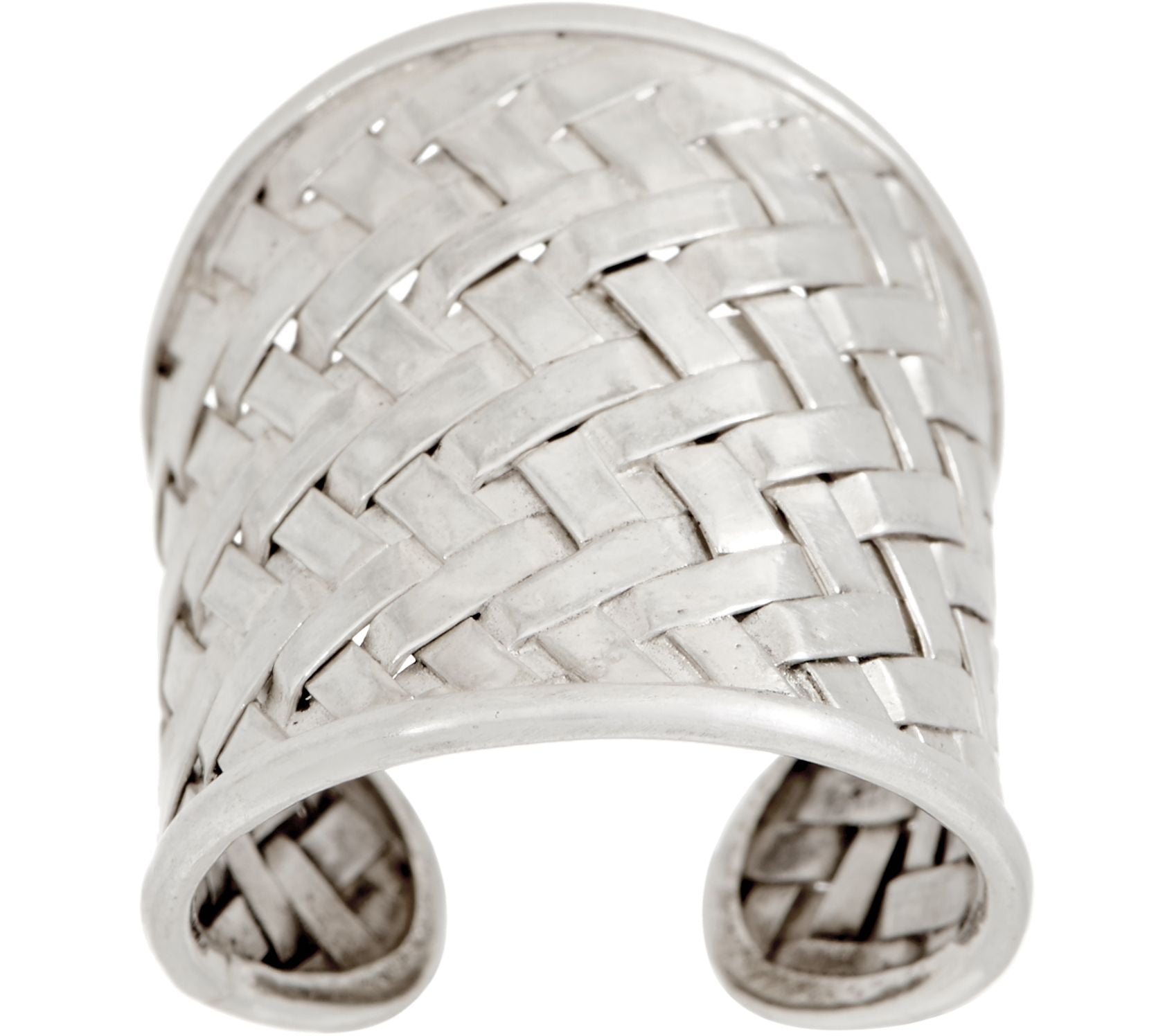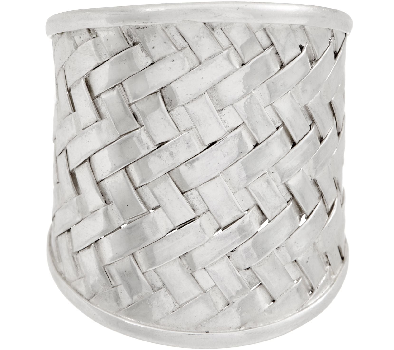 A woven sterling silver pattern distinguishes this bold, beautiful ring made for special evenings or day-to-day wear. From EXEX Design by Claudia Agudelo.