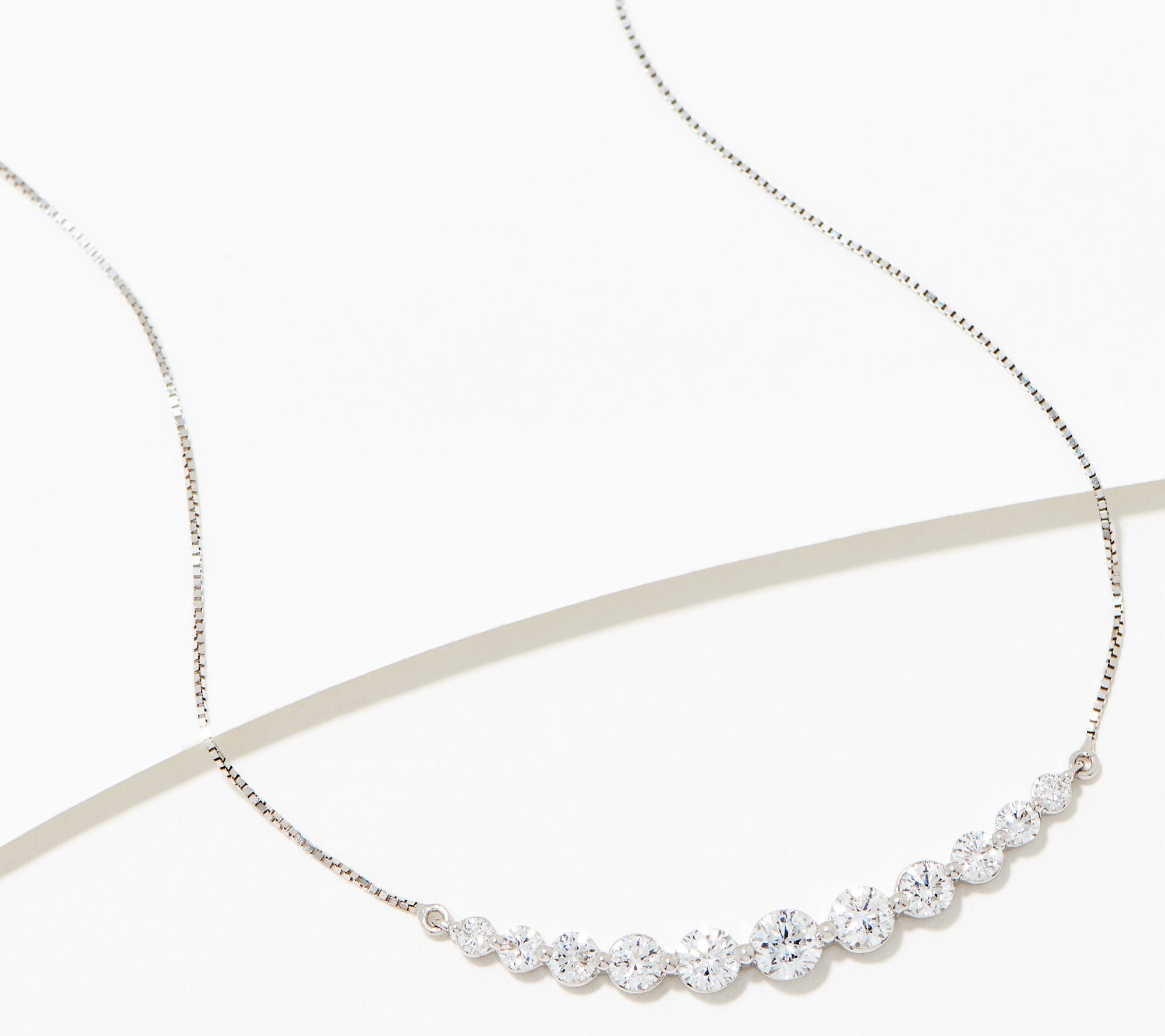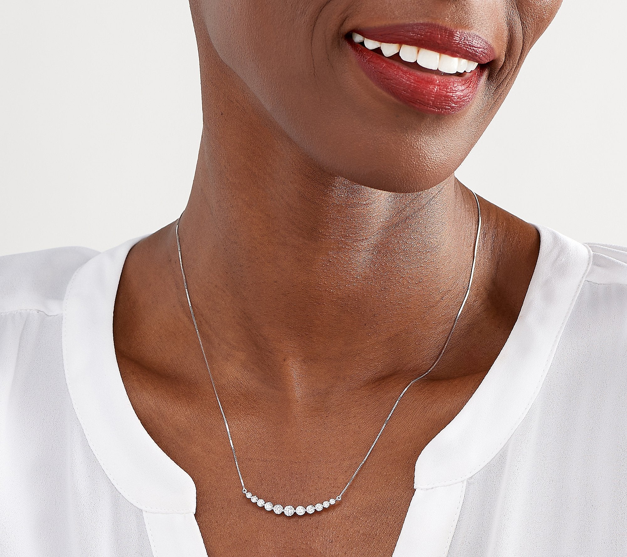 Stay ahead of the style curve with this chic and shapely necklace. Lab-grown diamonds dazzle along the curved design to give even an everyday ensemble a dose of special-occasion sparkle. From Fire Light Lab Grown Diamond Jewelry.
