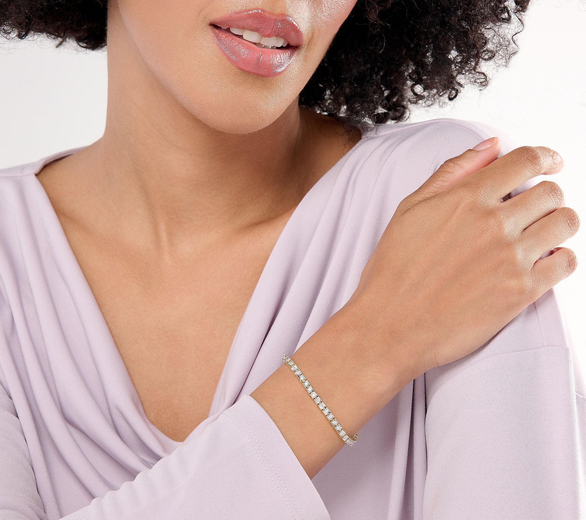 Give your style game a first class upgrade with this classic tennis bracelet lined with lab-grown diamonds. From Fire Light Lab Grown Diamond Jewelry.