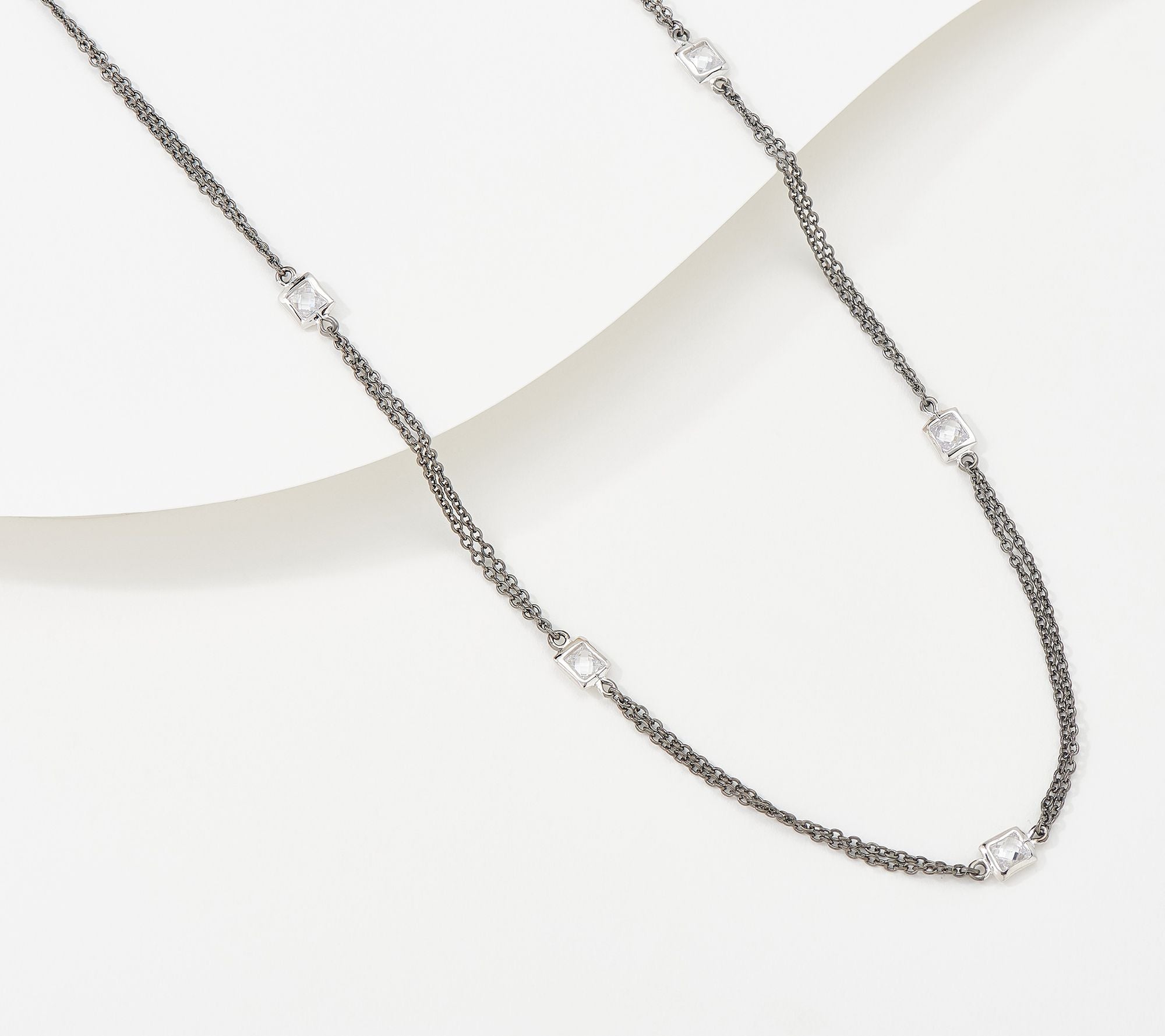 This sterling silver necklace adorned with cubic zirconia makes a fun layering option, but it shines just as brightly on its own! From FREIDA ROTHMAN.