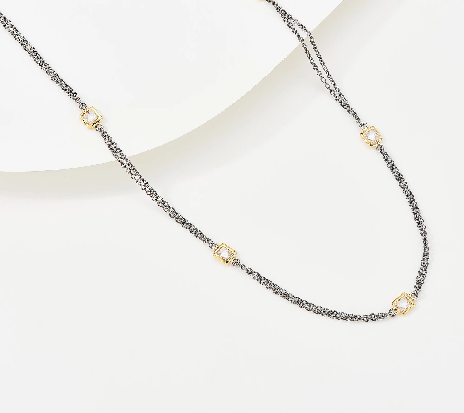 This sterling silver necklace adorned with cubic zirconia makes a fun layering option, but it shines just as brightly on its own! From FREIDA ROTHMAN.