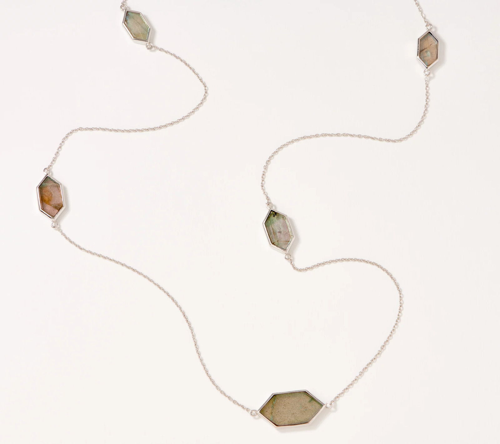 Stations of unique gemstones hit every style point you're looking for in this long sterling silver necklace. From Generation Gems.