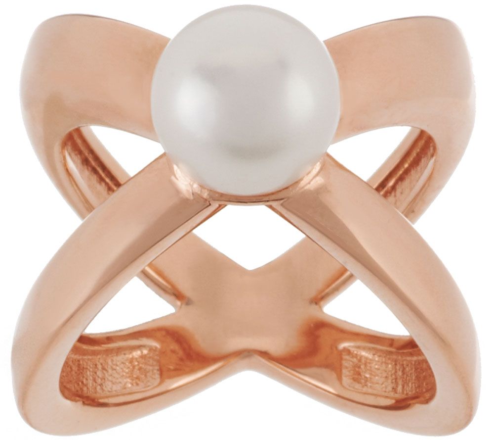 An exquisite X. A button-shaped cultured freshwater pearl is set perfectly in the center of this polished, colored bronze, X-design ring. From Honora.