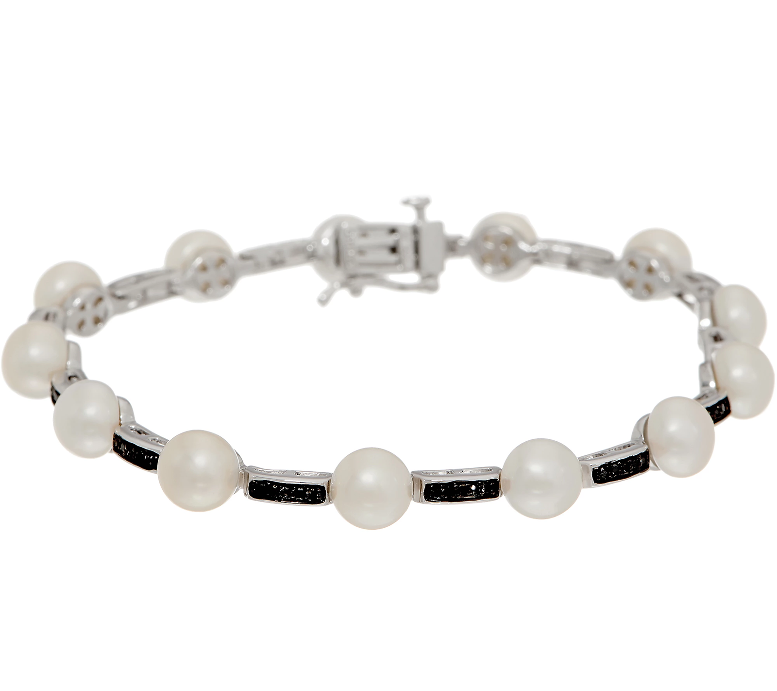 Colorfully coordinated, this tennis bracelet is a true dazzler thanks to complementing colored diamonds and button-shaped cultured freshwater pearls. From Honora.