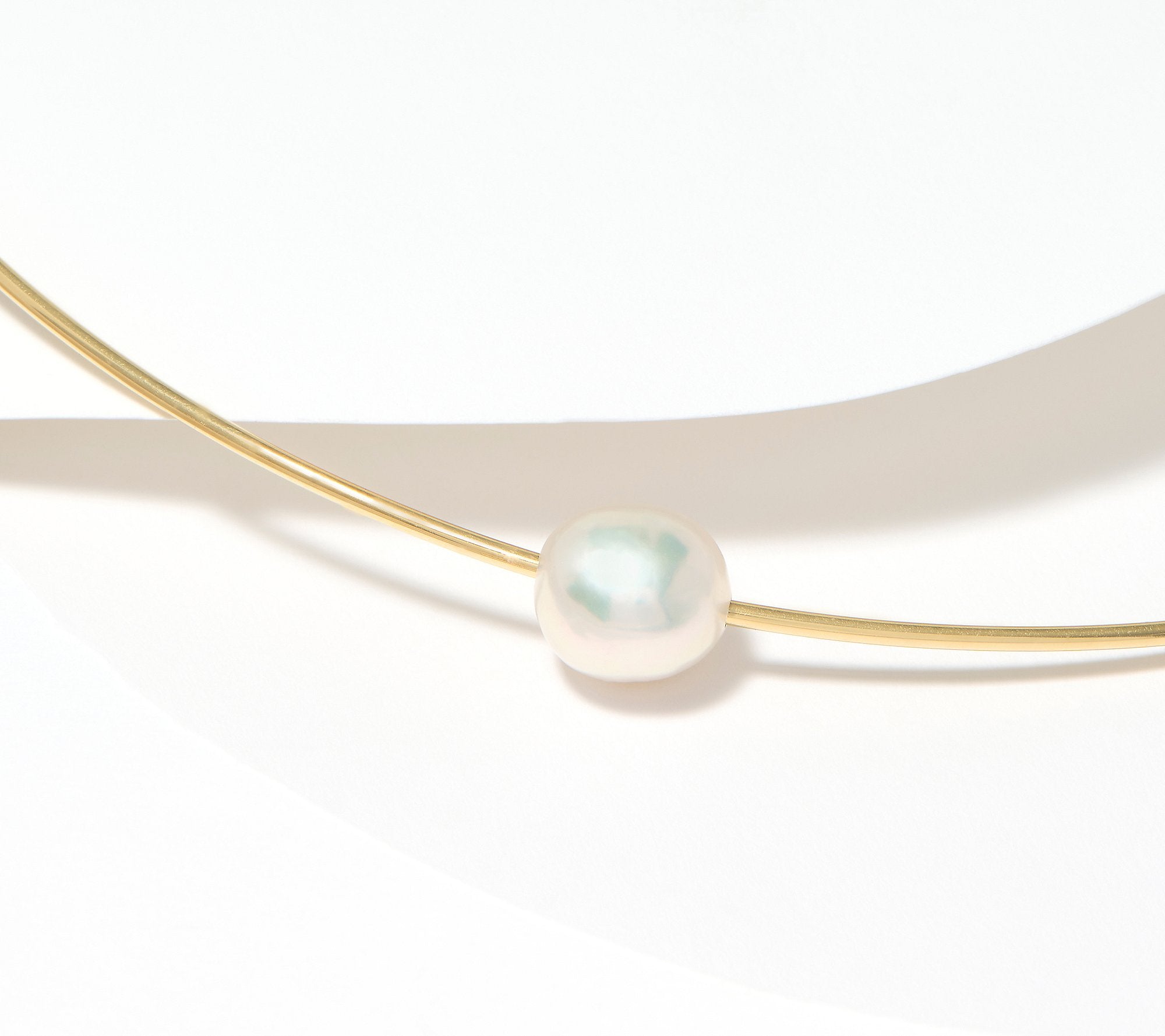 Dip your toe into the cultured pearl pool with this sleek and stunning omega necklace featuring a solitary, sliding Ming cultured pearl. From Honora.