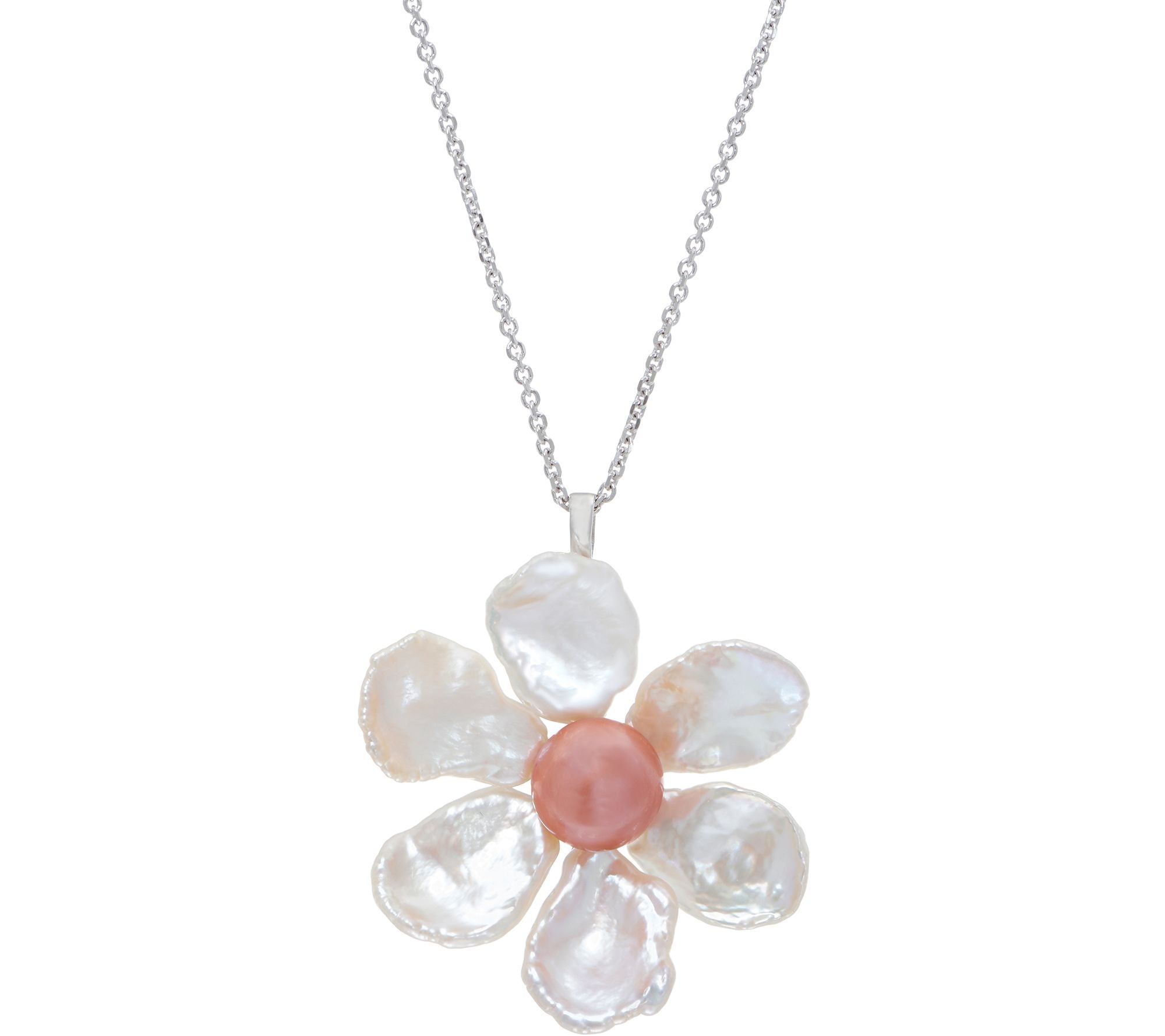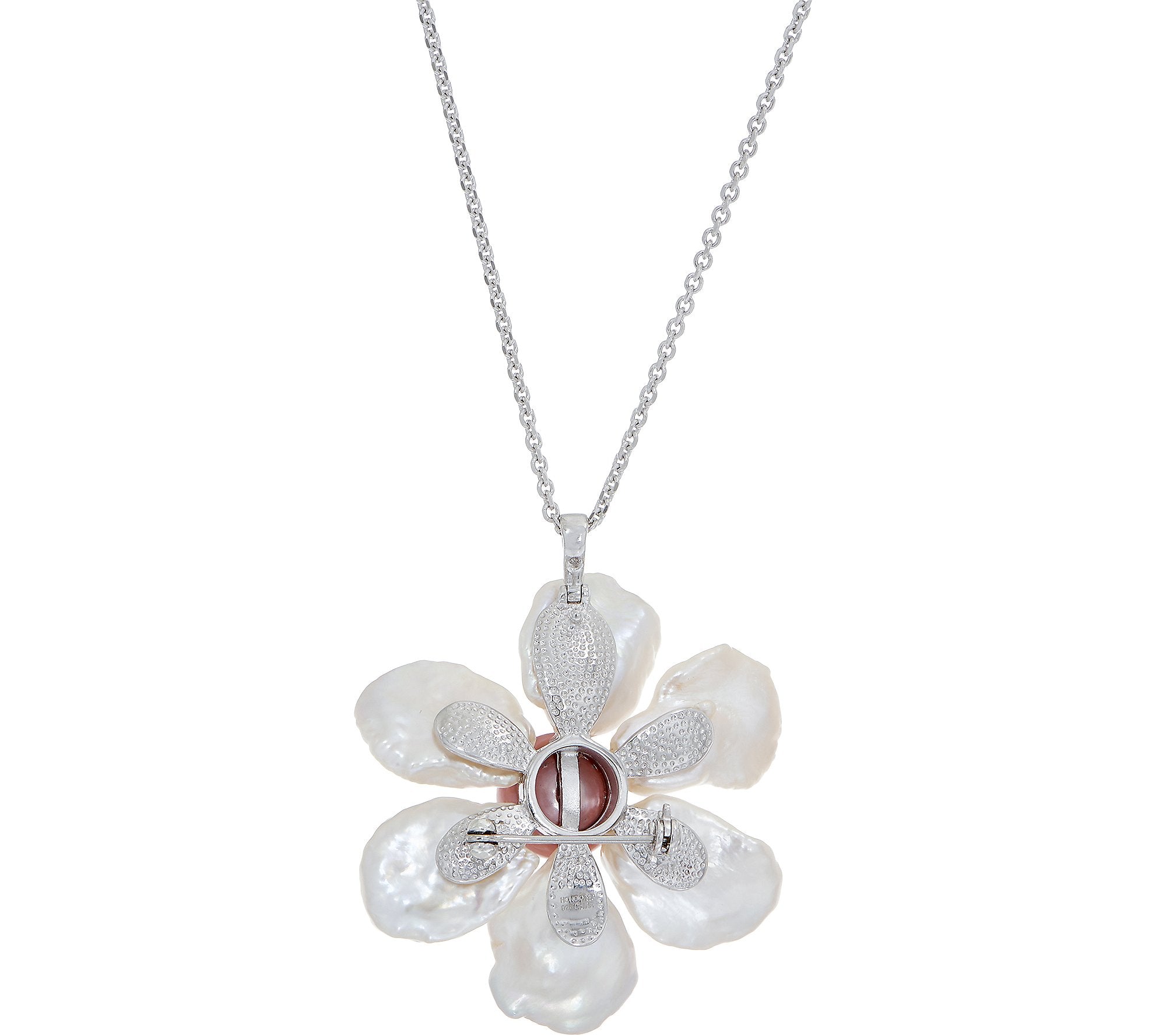 From pin to pendant in a snap, this luminous cultured freshwater pearl flower design catches the eye. From Honora.